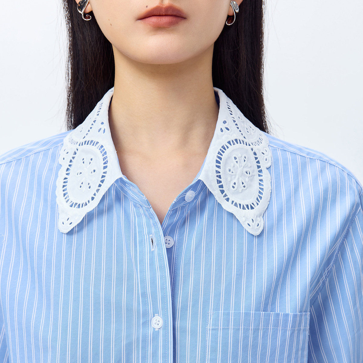 LILY 2026春新款纯棉法式蕾丝翻领条纹宽松休闲气质通勤衬衫外套,融合法式优雅与现代通勤需求。精选优质纯棉面料,亲肤透气,穿着舒适自在。经典条纹设计搭配精致蕾丝翻领,细节处尽显浪漫与知性。宽松版型剪裁,包容身形,轻松打造随性慵懒的时尚感。既可单穿作为气质衬衫,亦可外搭作轻薄外套,适应春日多变气候。无论是职场通勤还是日常出行,都能展现女性的柔美与干练。简约而不失设计感,是春季衣橱不可或缺的百搭单品,诠释现代女性的独立与优雅。