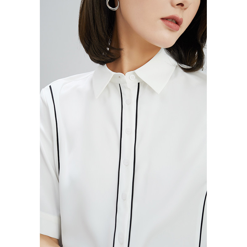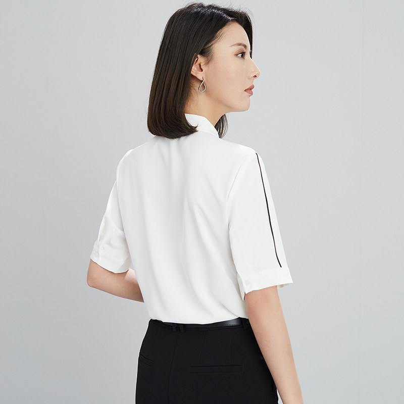璐丝百丽白色雪纺衬衫,以轻盈透气的优质雪纺面料打造,专为夏季设计,兼具舒适与优雅。短袖剪裁利落大方,融合小众设计元素,如精致木耳边、不对称领口或微透视细节,打破传统职业装单调感,彰显独特时尚品味。纯白色调清新百搭,轻松驾驭通勤、约会或休闲场合,搭配西装裤或半身裙尽显干练洋气。版型修身不紧身,巧妙修饰身形,展现女性柔美线条。无论是职场穿搭还是日常出街,这件设计感十足的衬衣都能为你增添一抹高级质感,是今夏不可或缺的时尚单品。