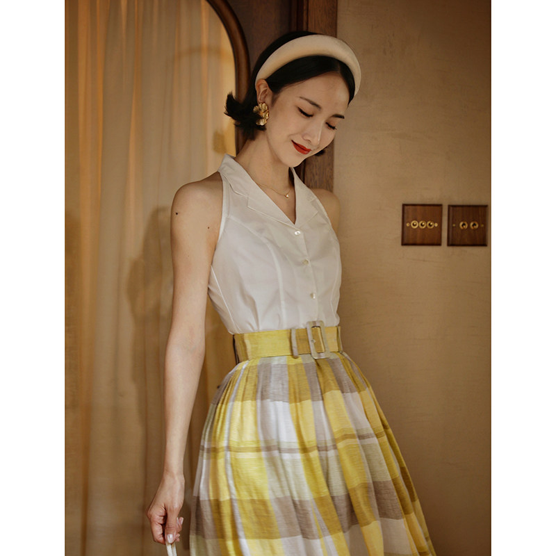 淘宝Ching's 复古收腰百搭砍袖衬衫女 法式小众设计感气质修身上衣夏