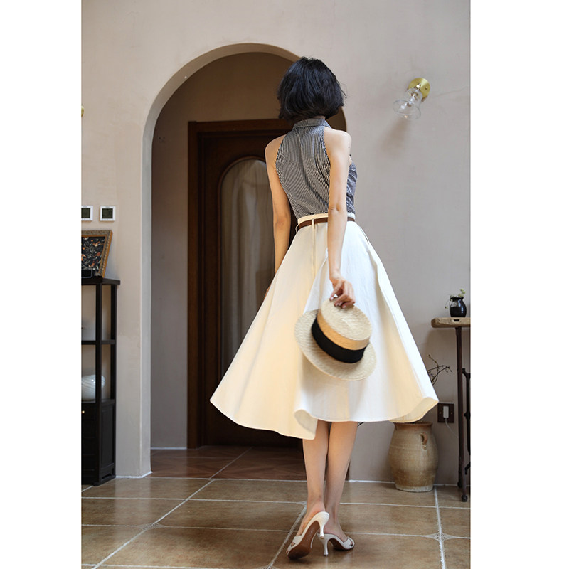淘春季新品女装衬衫式学院风叠层装饰格子短连衣裙 2180301 111