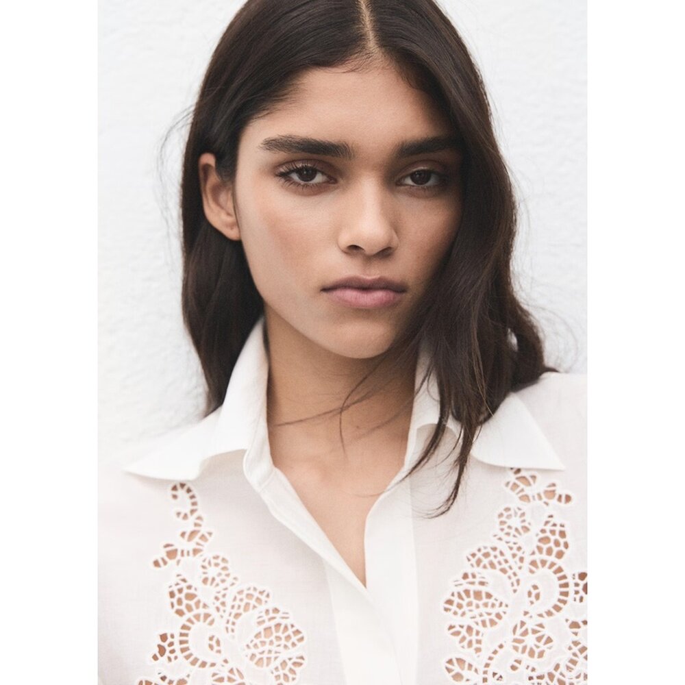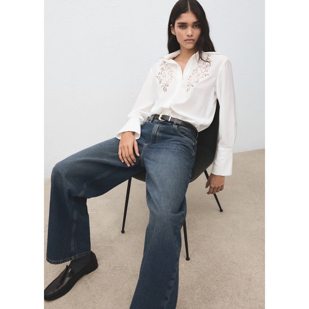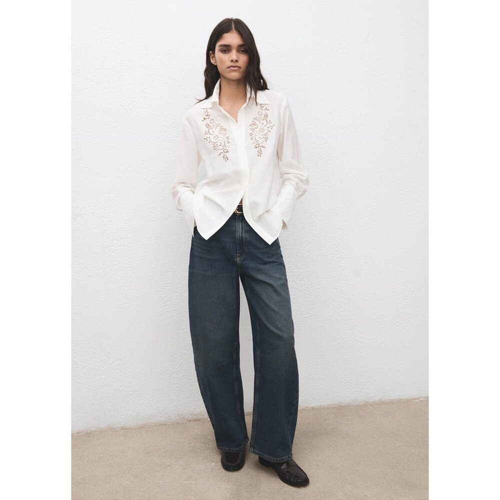 天猫自营欧洲直邮Mango芒果 女士米白色衬衫饰有镂空刺绣细节