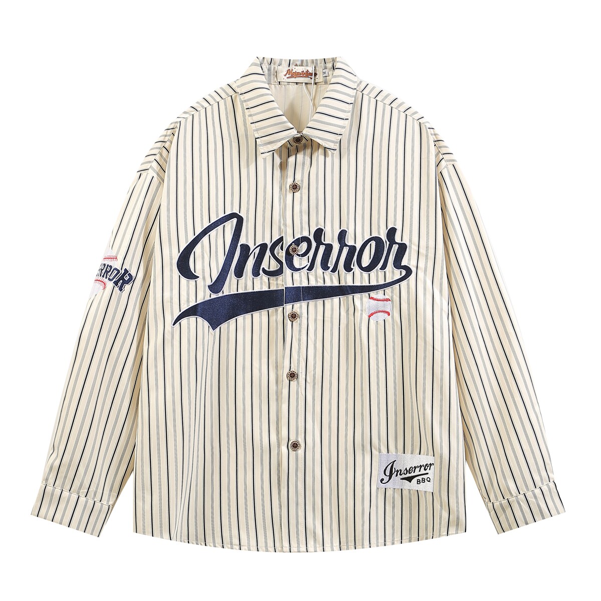 淘宝MoCreation美式复古条纹字母刺绣长袖衬衫女春季宽松休闲港风衬衣