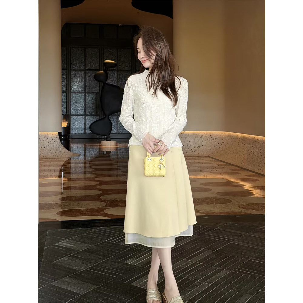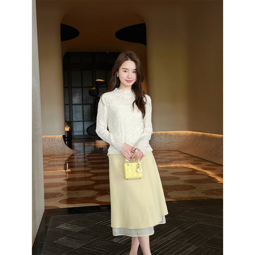 贰羊设计【晨终】经典翻领腔调白色衬衫女修身软糯针织肌理感上衣