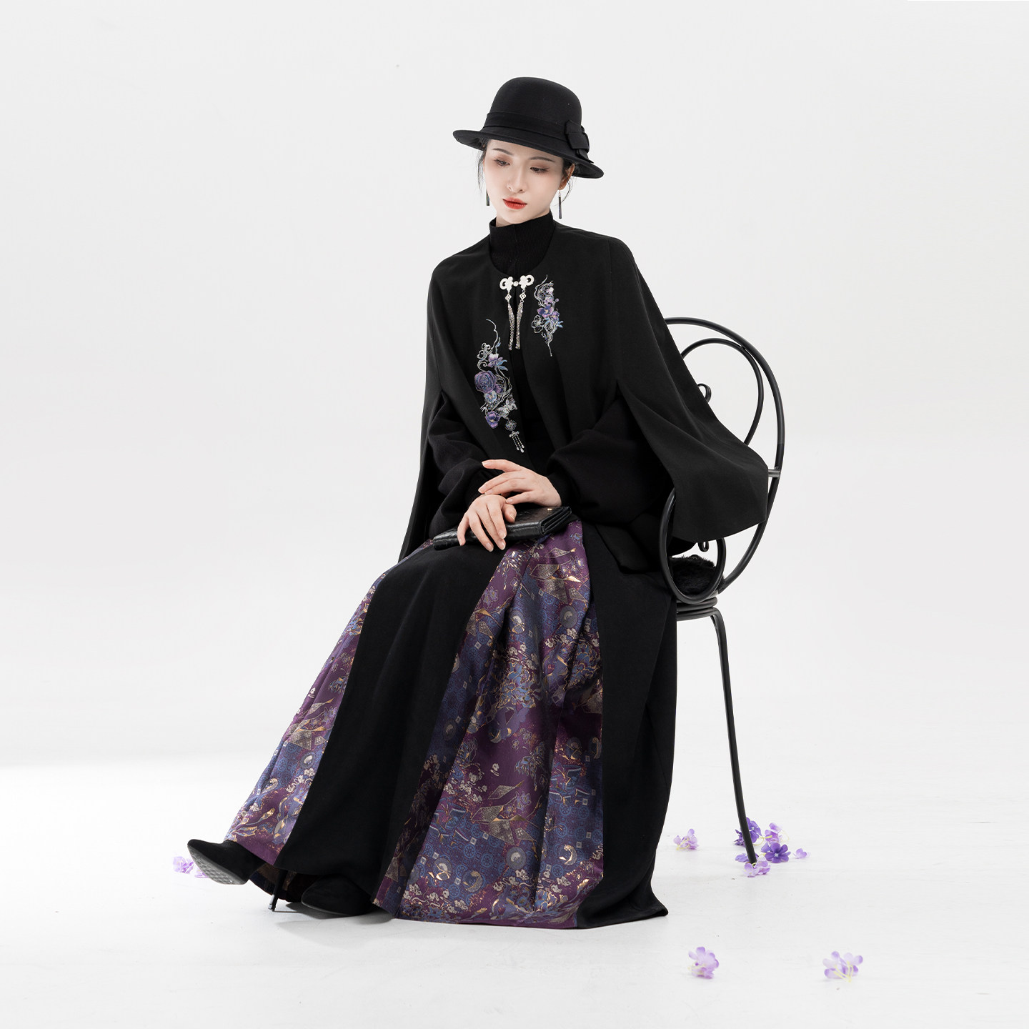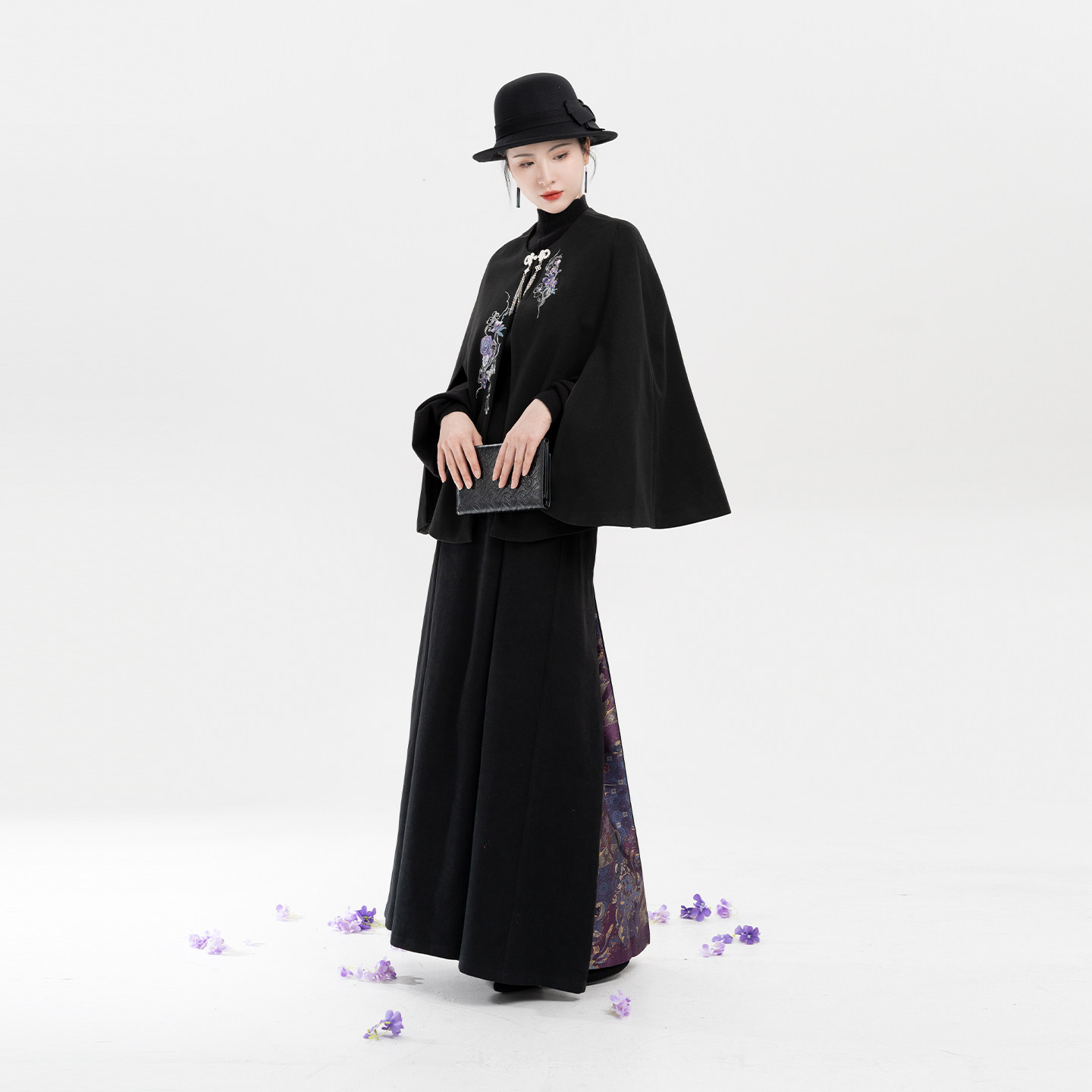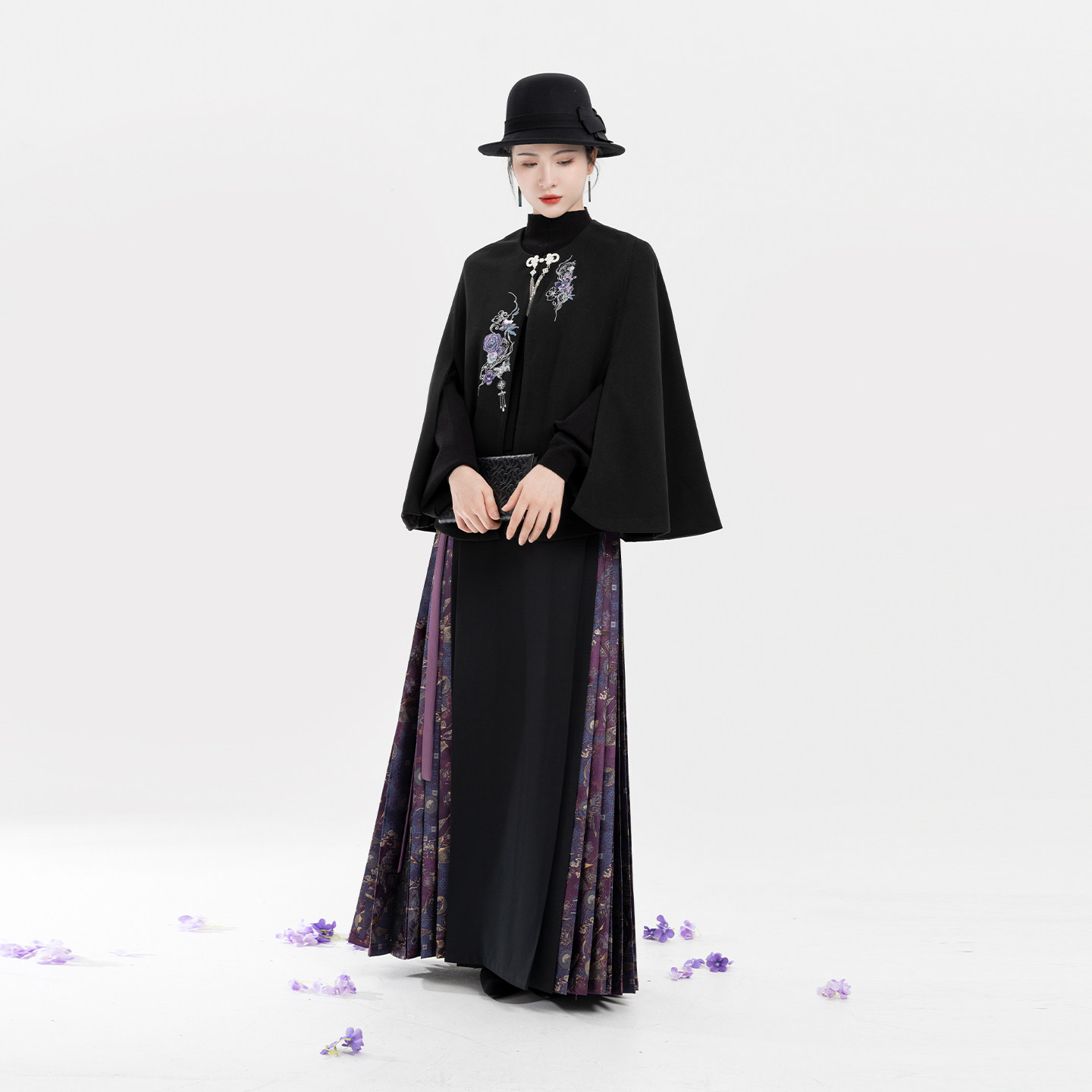 淘宝织造司[紫钧窑]新中式刺绣斗篷侧开襟衬衫上衣改良三裥裙马面裙女