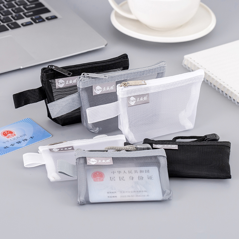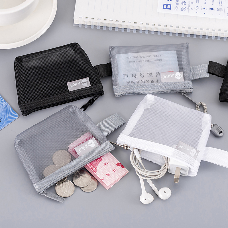 淘宝透明网纱收纳袋零钱包钥匙包公交卡片包尼龙便携玩具化妆品收纳