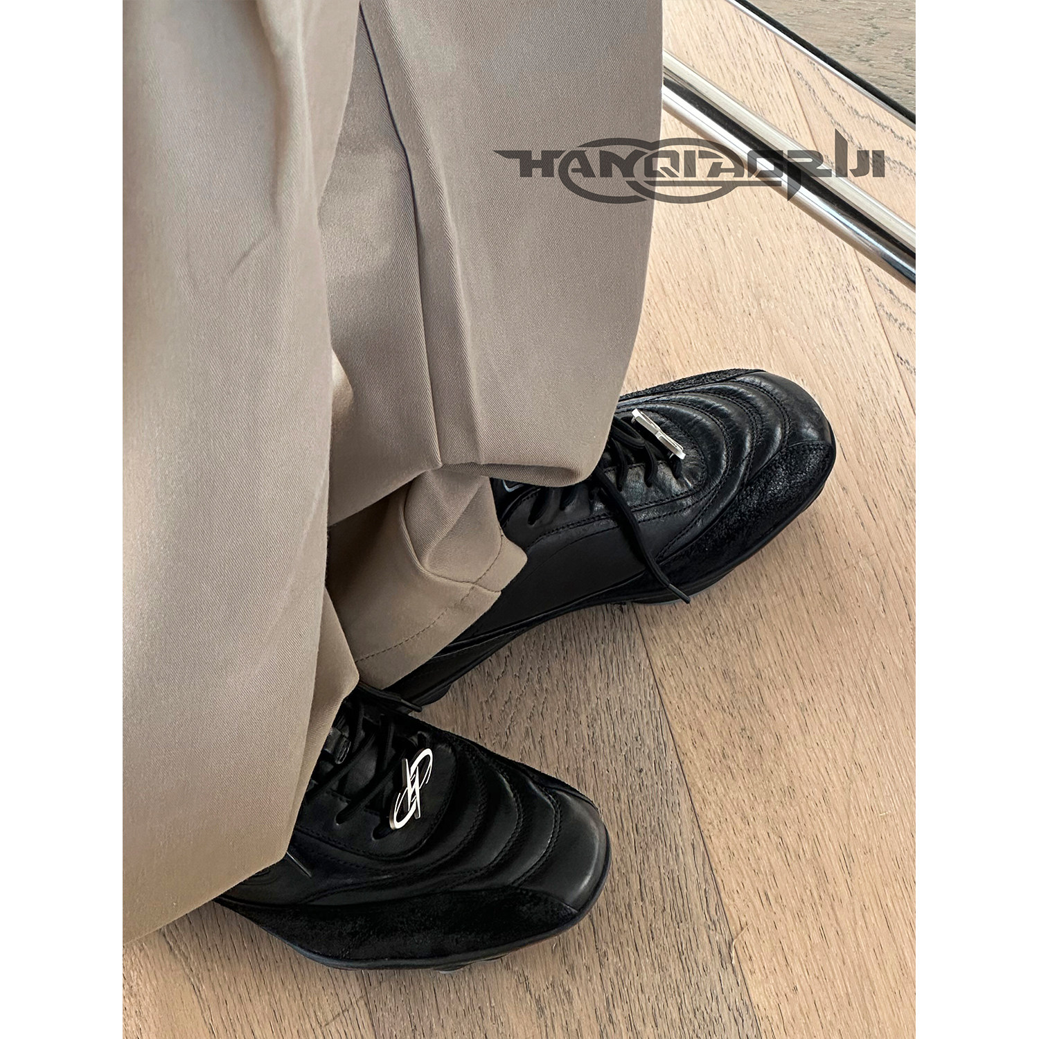 韩桥日记[幽渊系列]"涡轮"日常通勤德训鞋黑色休闲足球鞋男赛车鞋