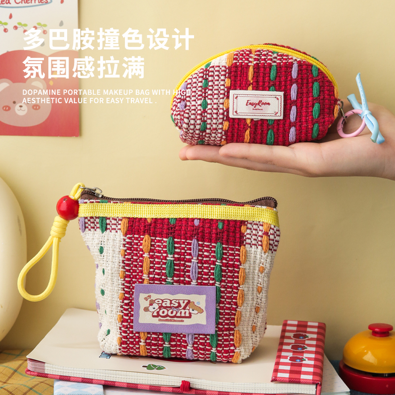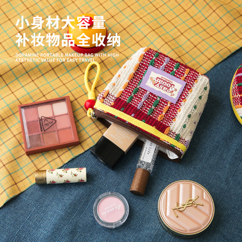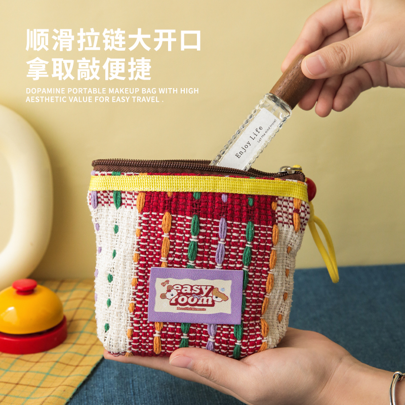 天猫彩虹编织补妆包撞色高颜值迷你化妆包随身便携外出小收纳袋轻便款