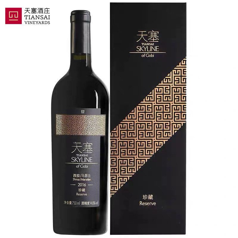 天猫新疆天塞酒庄 珍藏西拉马瑟兰干红葡萄酒礼盒装 国产官方正品