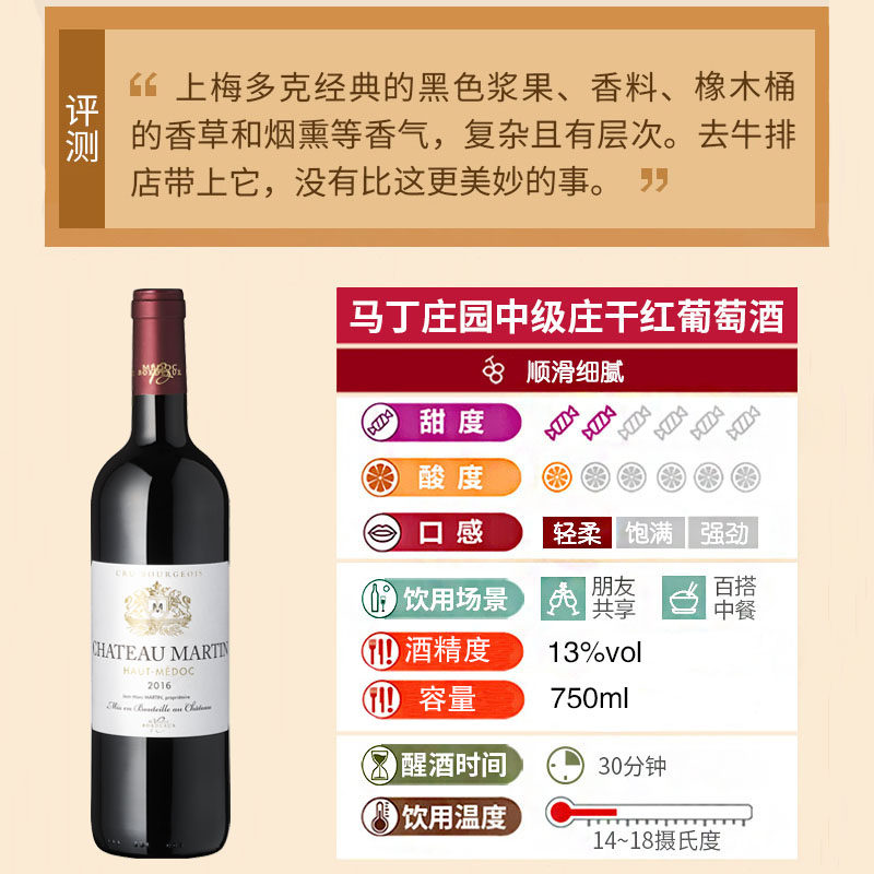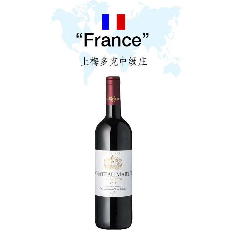 淘宝法国原瓶进口上梅多克中级庄红酒马丁庄园干红葡萄酒波尔多AOC