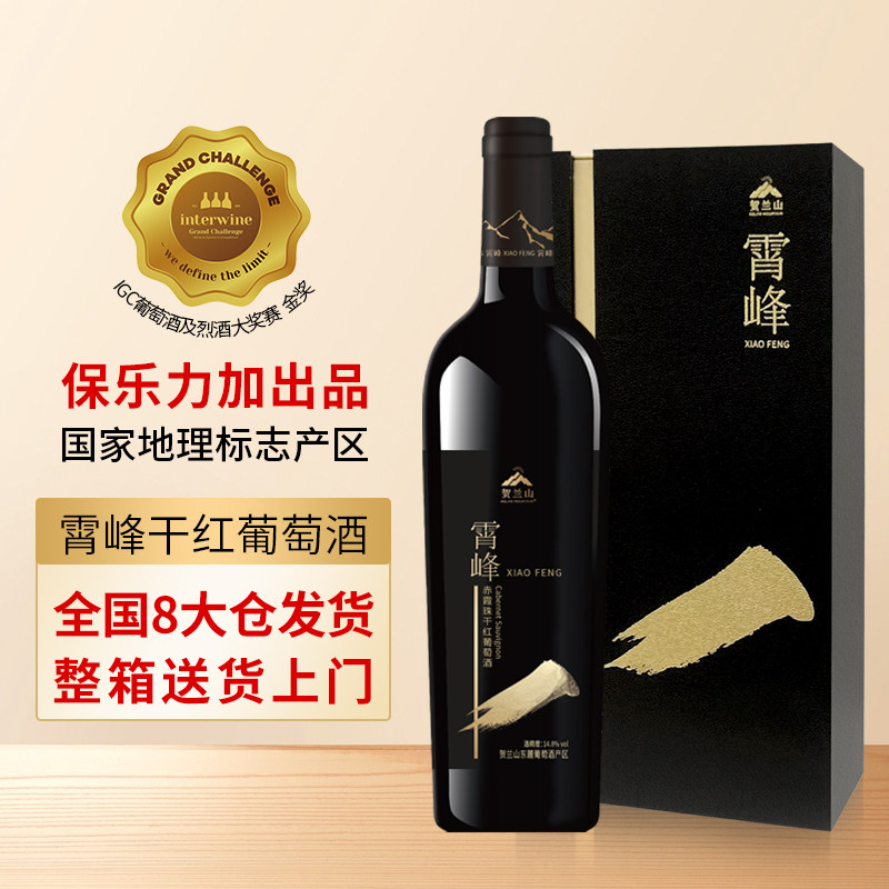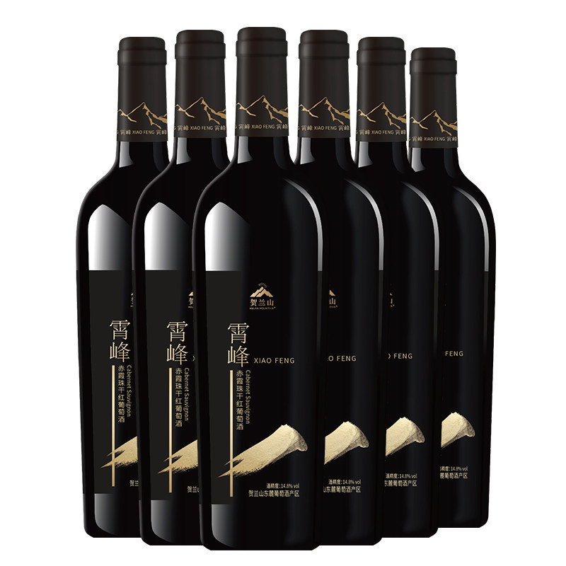 天猫贺兰山葡萄酒国产霄峰干红优选赤霞珠红酒六支整箱装保乐力加出品