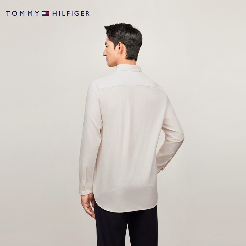天猫Tommy秋冬男装棉羊绒混纺小绣标商务通勤休闲纯色长袖衬衫外套