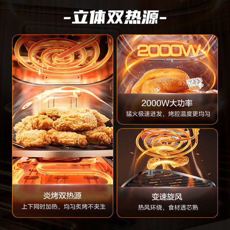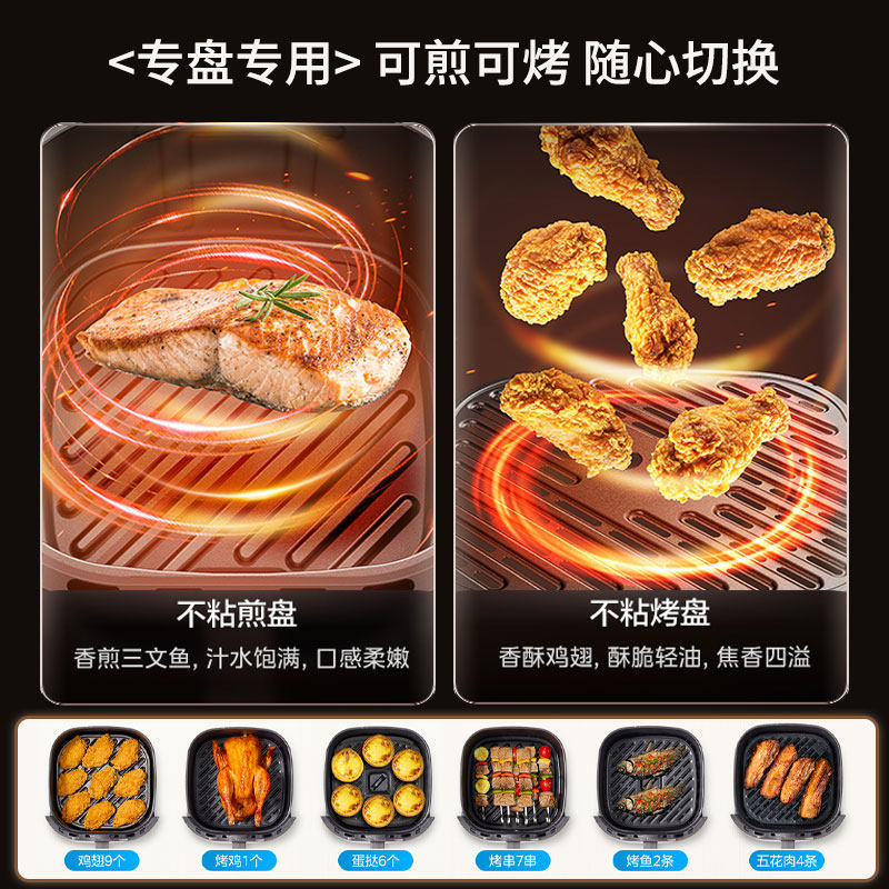 天猫美的炎烤空气炸锅家用大容量双热源免翻面可视窗口多功能烹饪机