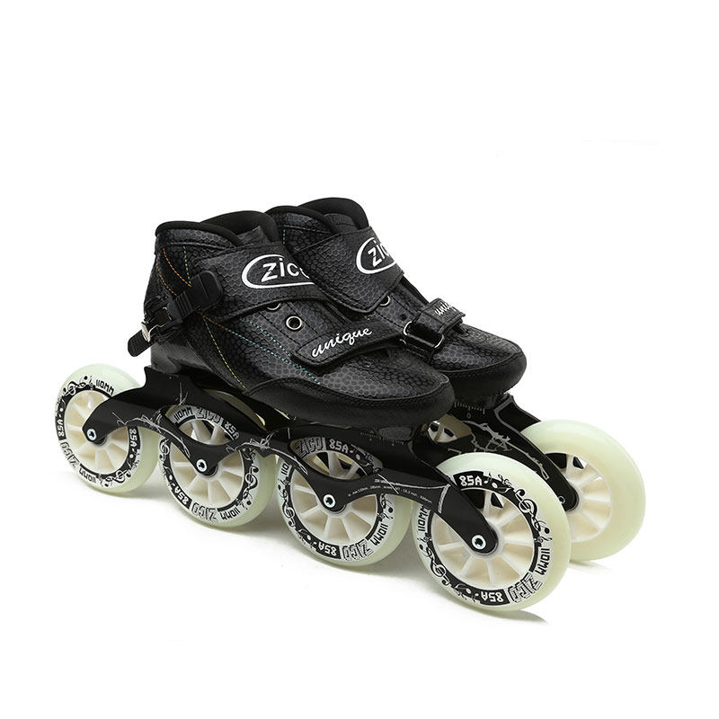 ZICO速滑鞋是一款专为轮滑爱好者设计的专业竞速轮滑鞋,采用高强度炭纤维上鞋,轻量化且支撑性强,有效提升滑行稳定性与速度表现。鞋身适配成人及儿童,配备可调节设计,满足不同脚型与成长需求。大轮配置(通常110mm以上)降低滚动阻力,增强续航能力,适合长距离高速滑行。内胆透气舒适,搭配专业速滑刀架,精准传递发力,提升操控响应。无论是日常训练还是竞赛场景,ZICO速滑鞋都以卓越性能助力滑行者突破极限,是追求速度与专业体验的理想之选。