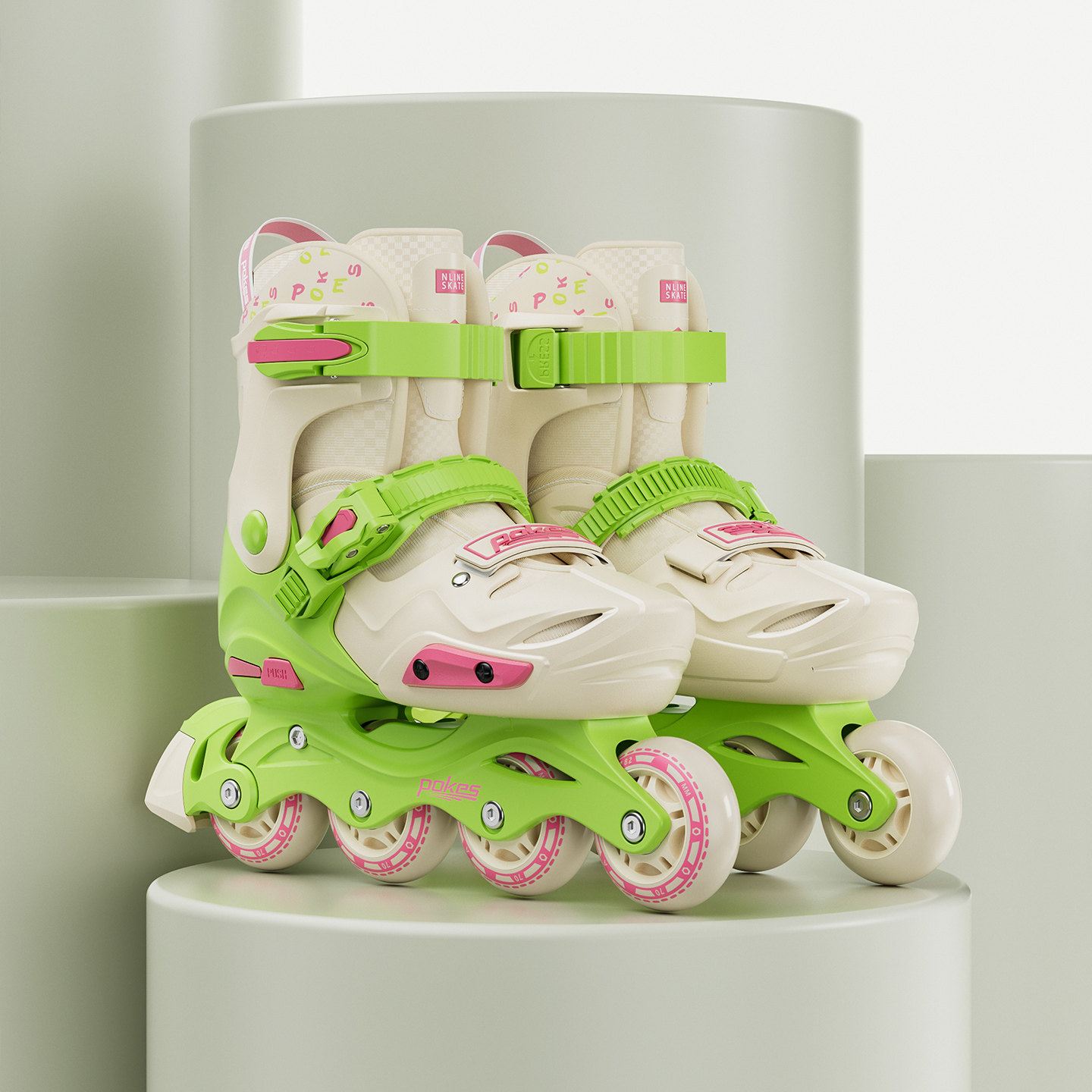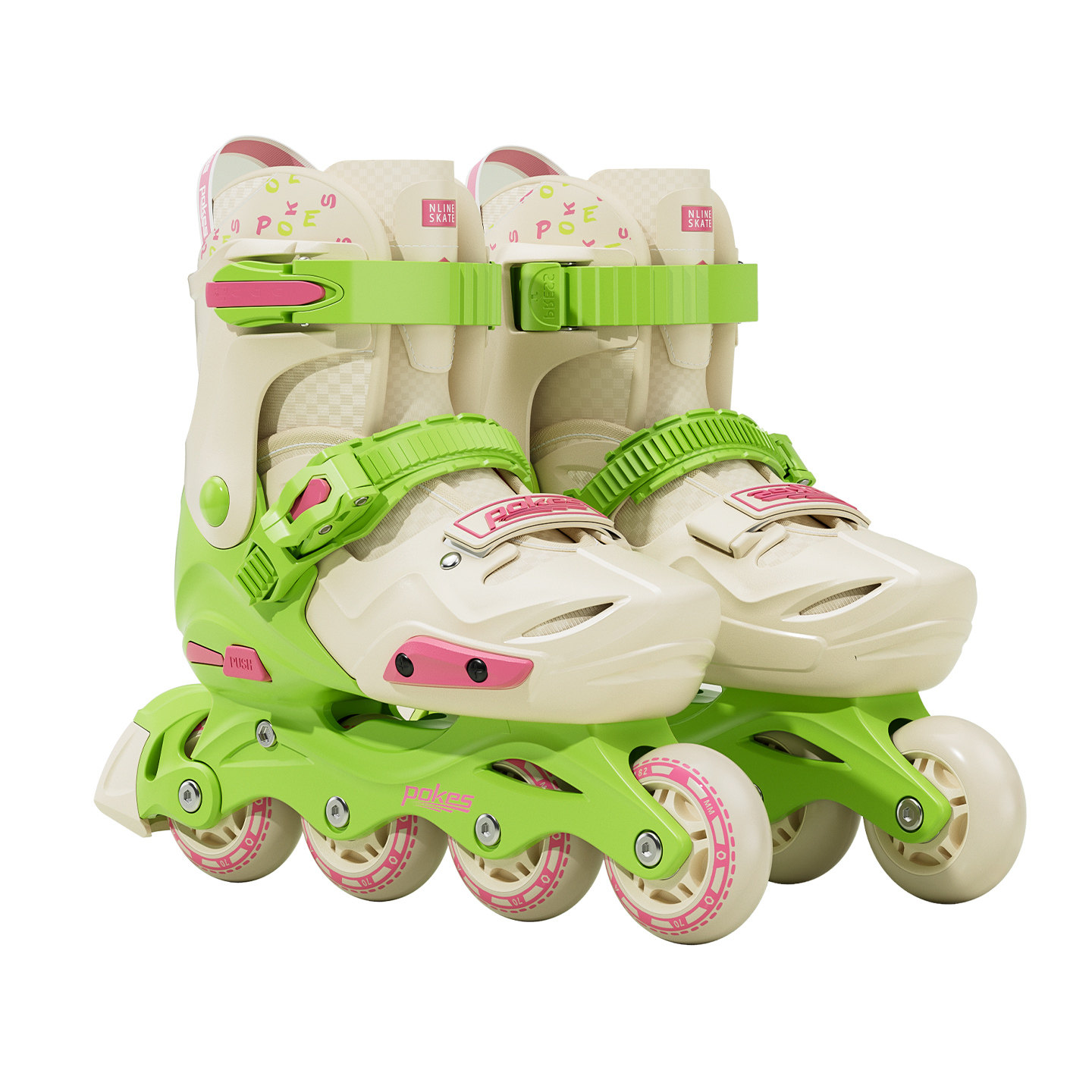 这款儿童一体刀架直排轮滑鞋专为初学者设计,适合男女童及成人使用。采用高强度一体成型刀架,结构稳固,承重力强,有效提升滑行稳定性与安全性。鞋身选用透气耐磨材料,内里柔软舒适,长时间穿着不闷脚。可调节尺码设计,适应不同脚型成长需求,延长使用寿命。搭配优质PU轮,抓地力强,减震效果好,适合多种地面滑行。专业级轴承确保滑行顺畅静音。配备可调节安全芭扣和魔术贴,穿脱便捷,包裹性强。整体轻便灵活,是儿童初学轮滑、成人休闲锻炼的理想选择,兼顾安全、舒适与耐用性。