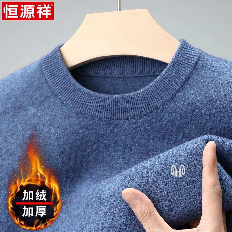 淘宝恒源祥加绒加厚100纯羊绒衫男圆领冬季毛衣男士一体绒打底羊毛衫