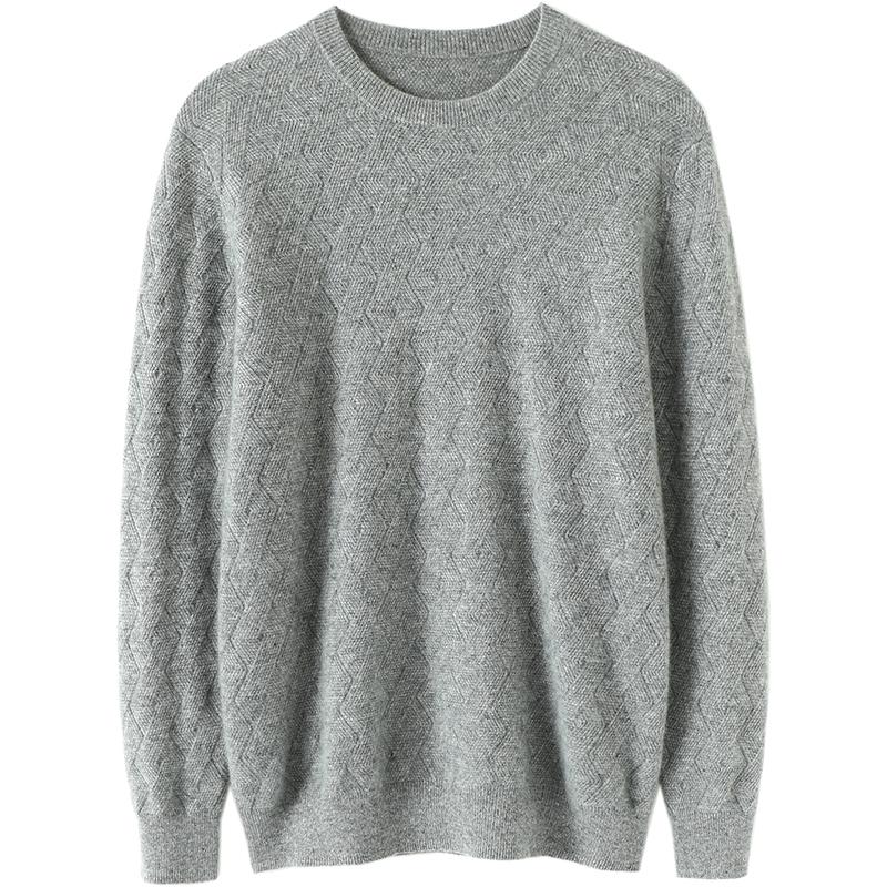 鄂尔多斯市100%纯山羊绒衫男士加厚圆领毛衣秋冬季新款针织羊毛衫