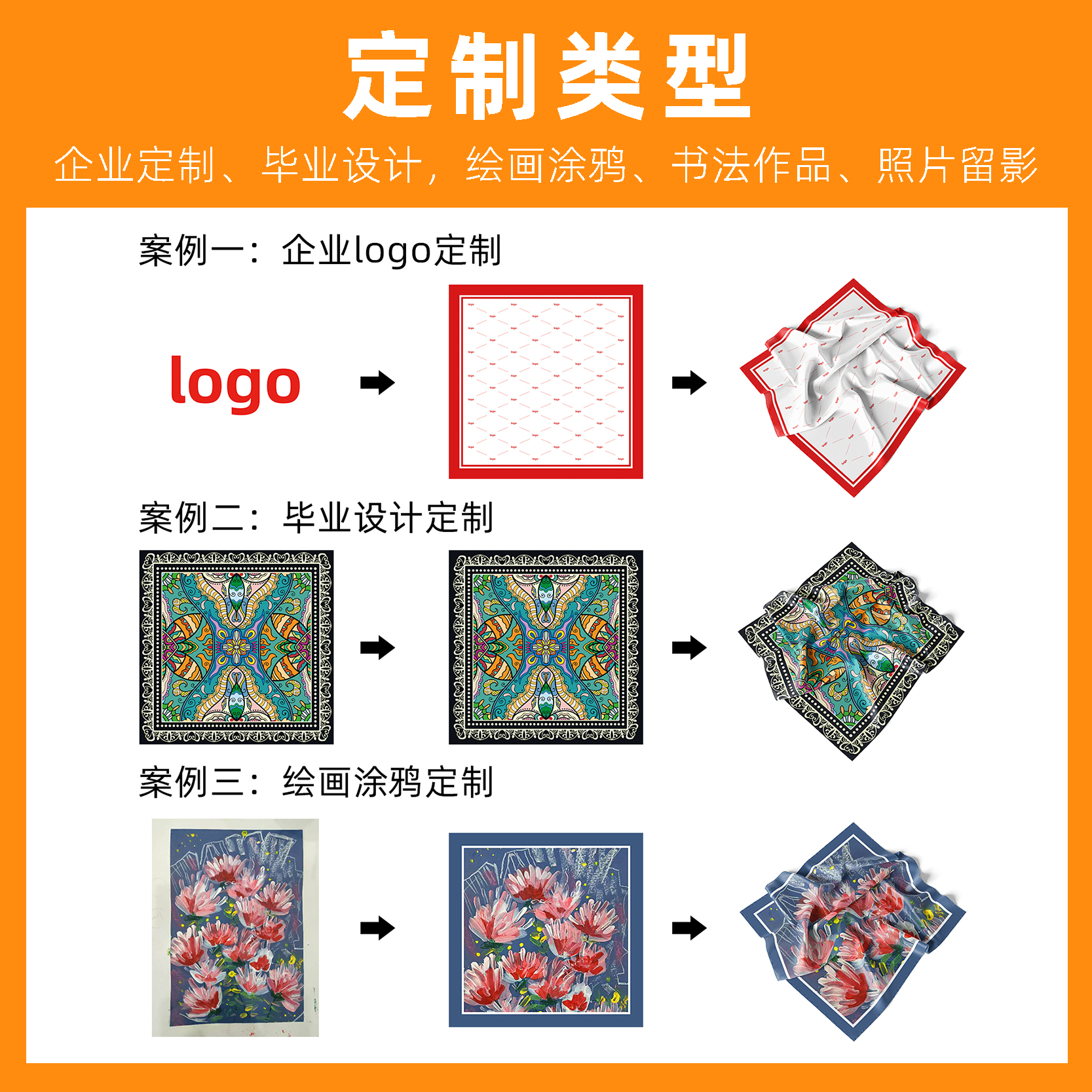 淘宝丝巾定制企业logo来图定制丝巾儿童绘画方巾定制长条丝巾真丝订做