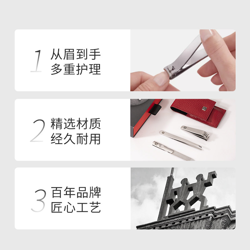 德国双立人指甲刀套装精选进口高品质不锈钢材质,精工锻造,锋利耐用,防锈抗腐蚀,长久使用仍光亮如新。套装包含指甲钳、指甲剪与甲锉三件套,搭配实用镊子,满足日常精细护理需求。人体工学设计握感舒适,操作精准省力,轻松修剪指甲并打磨边缘,呵护指尖健康。整体结构紧凑,收纳便捷,适合家庭使用或出行携带。双立人百年工艺品质保障,细节考究,彰显德系严谨与优雅,是追求品质生活的理想之选。无论是自用还是馈赠亲友,皆显贴心与品位。