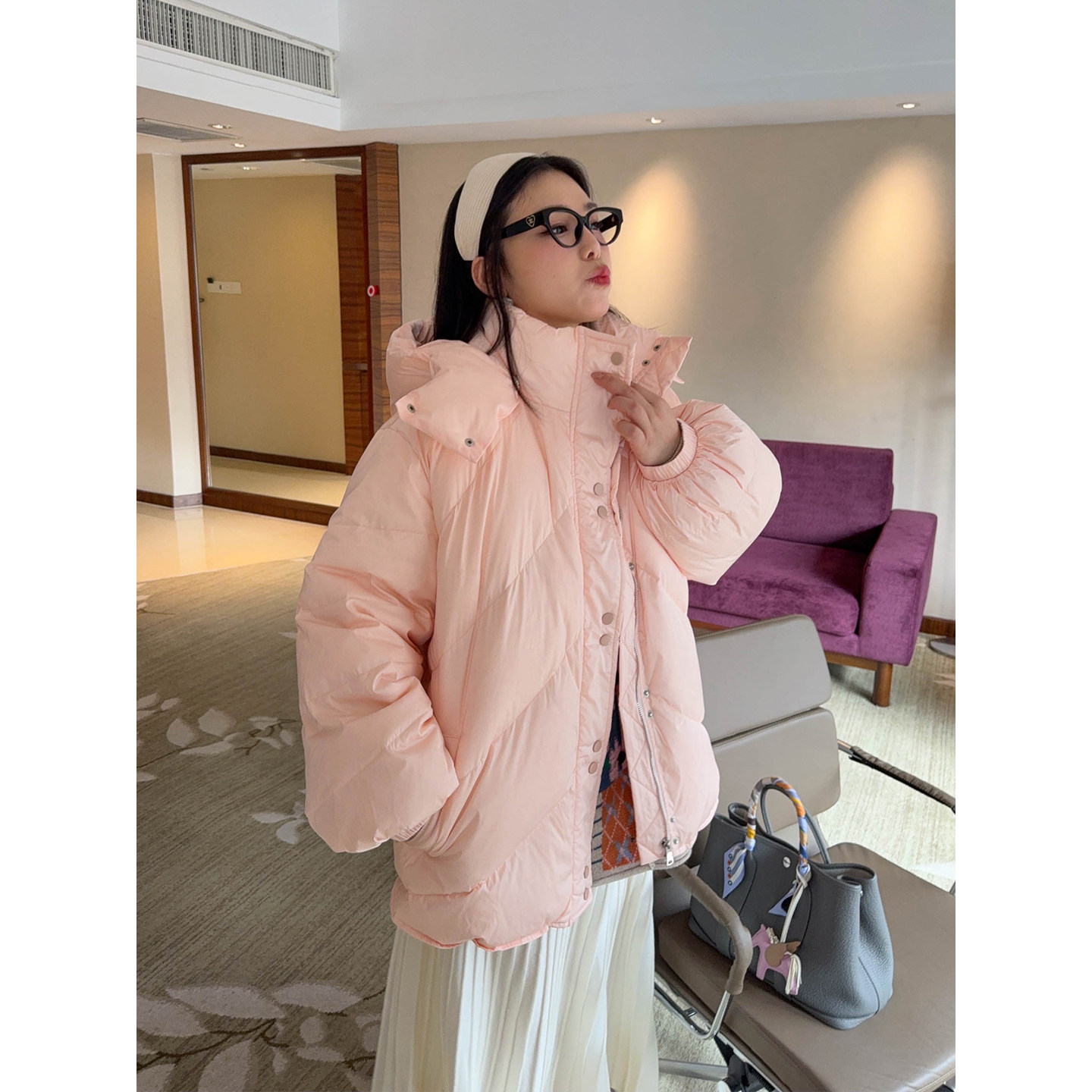 VOGANA戛纳家大码女装羽绒服,专为追求舒适与时尚的丰满女性设计。采用95%高含量白鸭绒填充,蓬松轻盈,锁温保暖性能卓越,轻松应对严寒冬季。立领连帽设计,防风护颈,提升整体保暖效果。宽松面包服版型,包容性强,不挑身材,穿着自在无束缚。精选高品质防钻绒面料,细腻耐磨,触感柔软。细节精致,走线工整,兼顾实用与美感。无论是日常通勤还是出行休闲,都能展现优雅自信气质。VOGANA以匠心工艺,为大码女性打造温暖又时尚的冬日穿搭选择,让每一位女性都能穿出风采与温度。