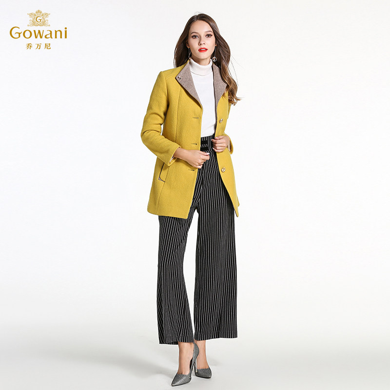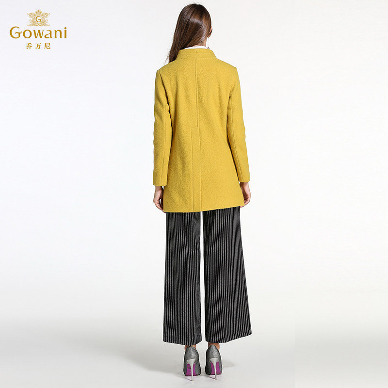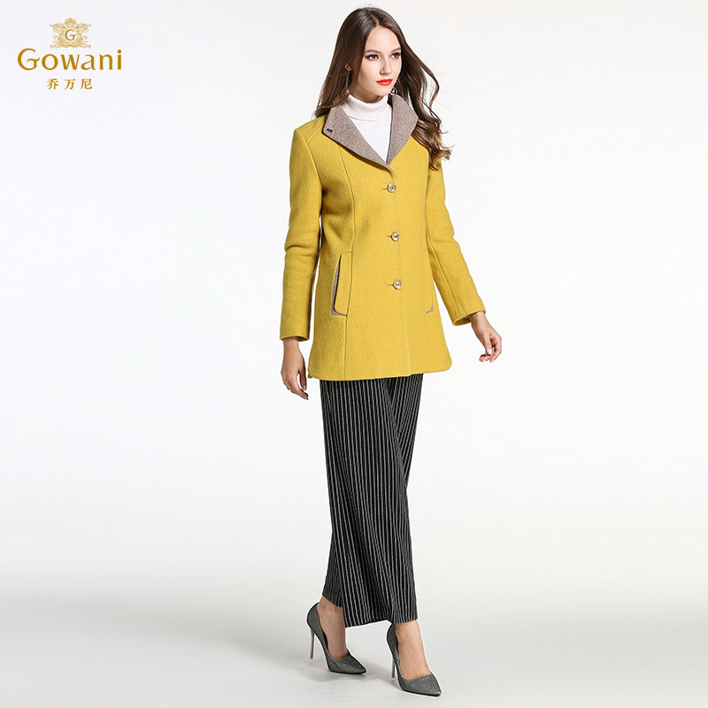天猫乔万尼冬季女装羊毛呢大衣修身中长款纯色大码长袖单排扣羊毛外套