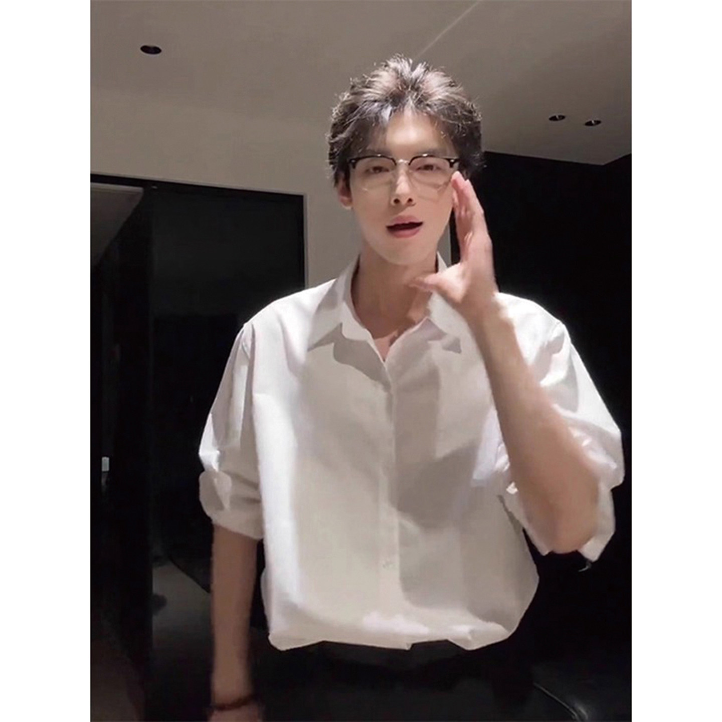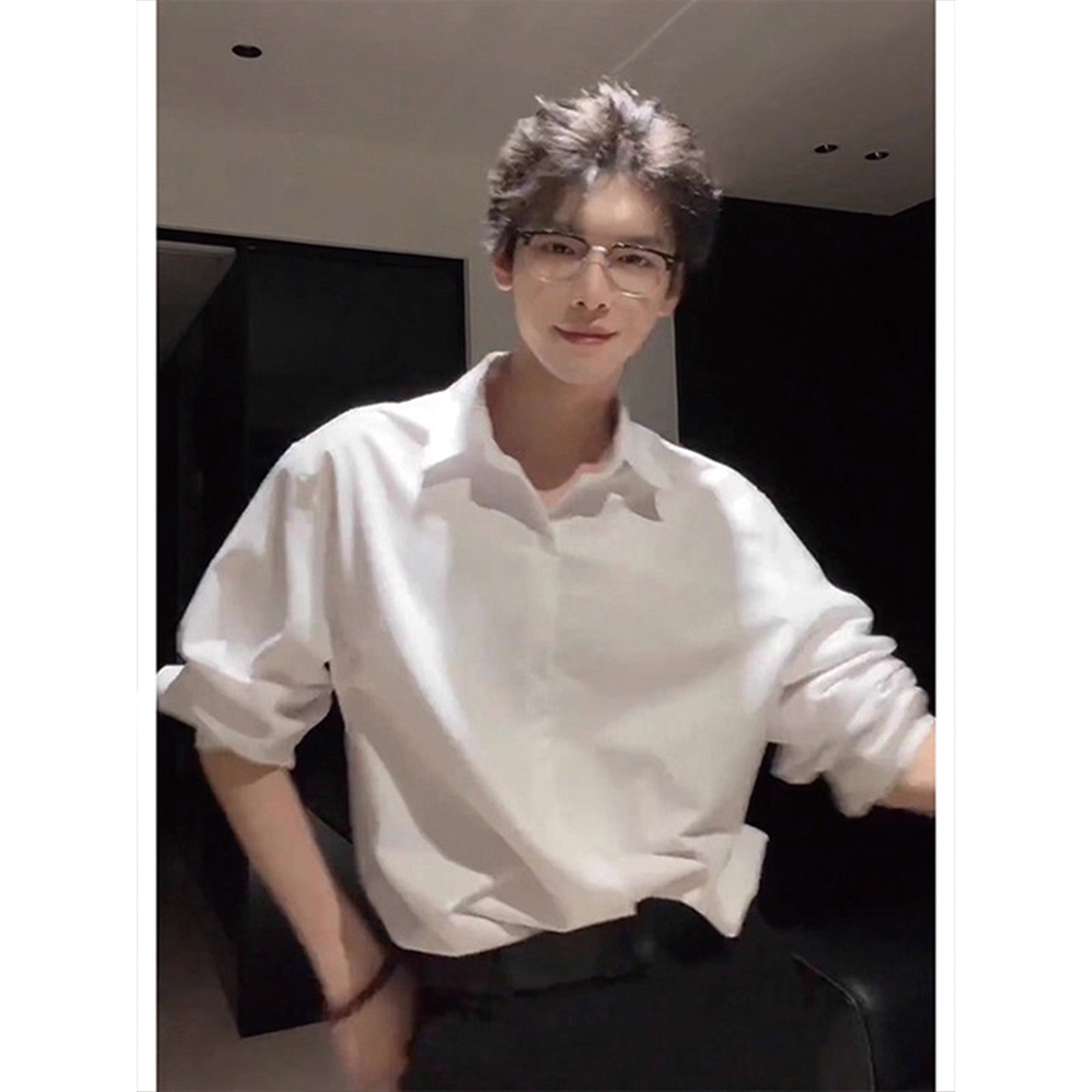 天猫少年感cleanfit白色长袖衬衫男秋冬加绒西装内搭高级感轻熟风衬衣