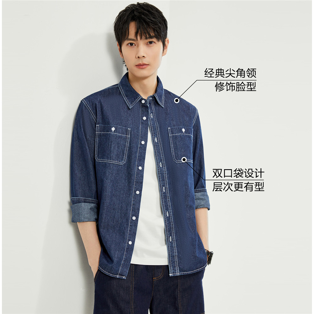 淘拉夏贝尔牛仔衬衫长袖春季2026新款男士经典翻领衬衣外套百搭复古