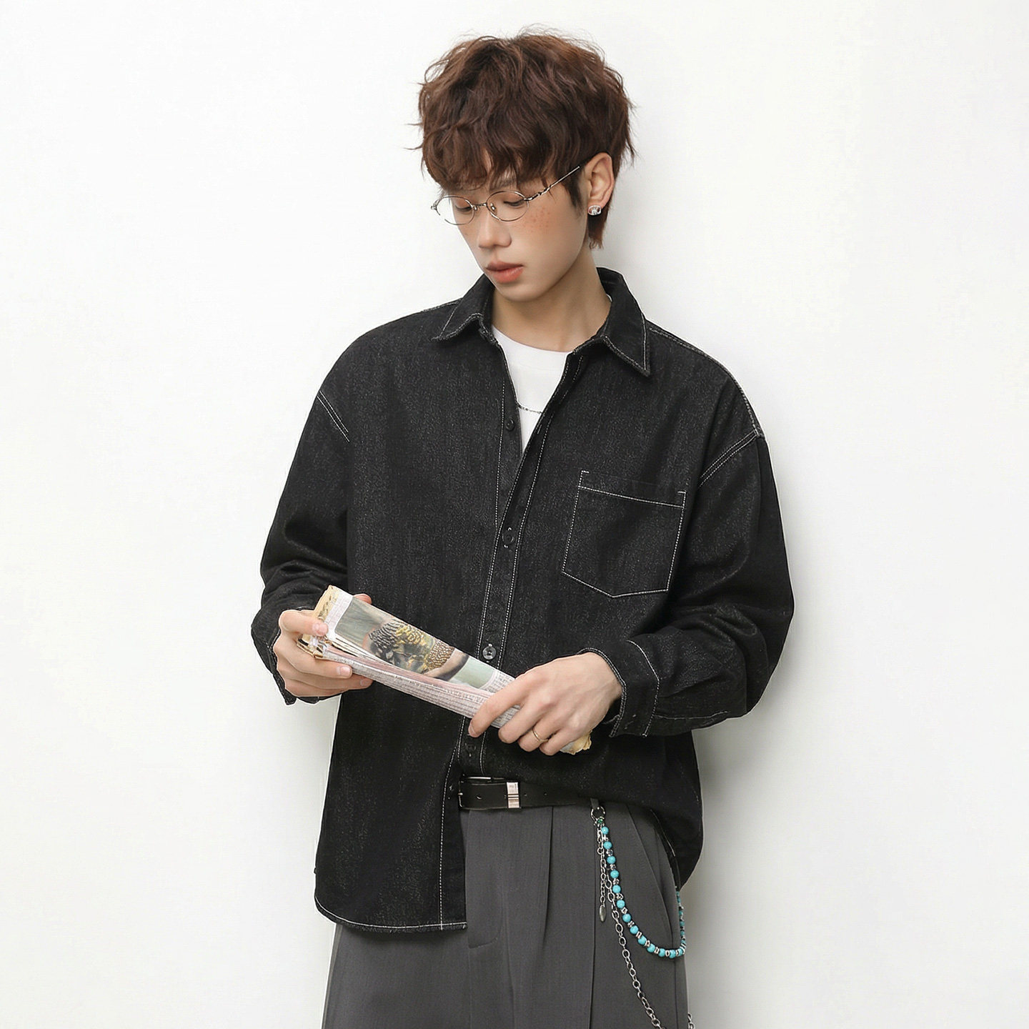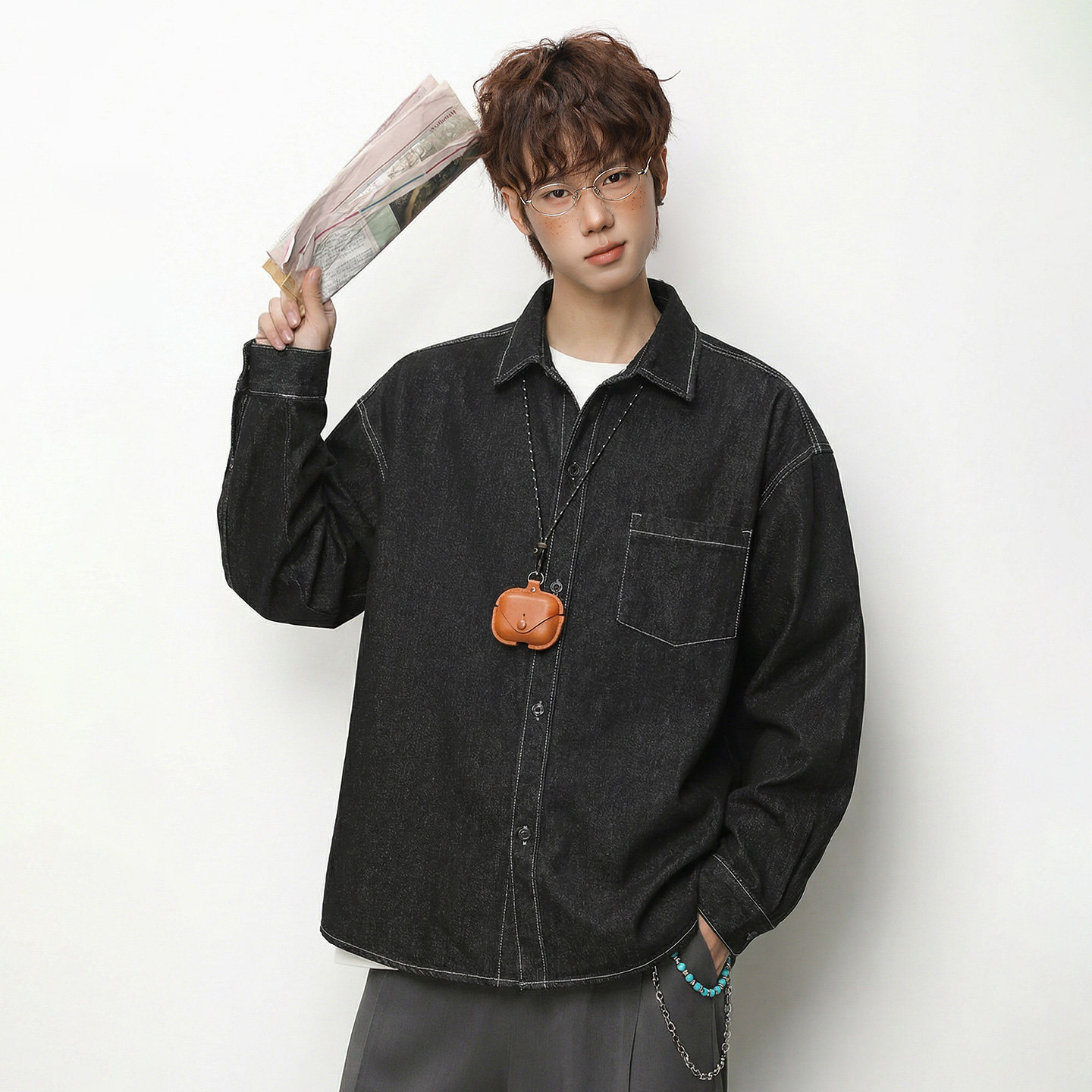 韩版英伦风牛仔衬衫男士高级感痞帅长袖衬衣内搭叠穿翻领工装外套