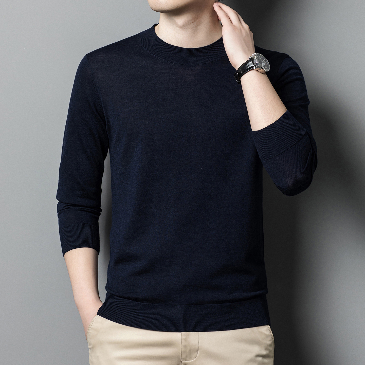 淘宝柔滑舒暖精纺桑蚕丝羊绒羊毛衫男秋冬季贴身无束缚轻糯打底针织衫