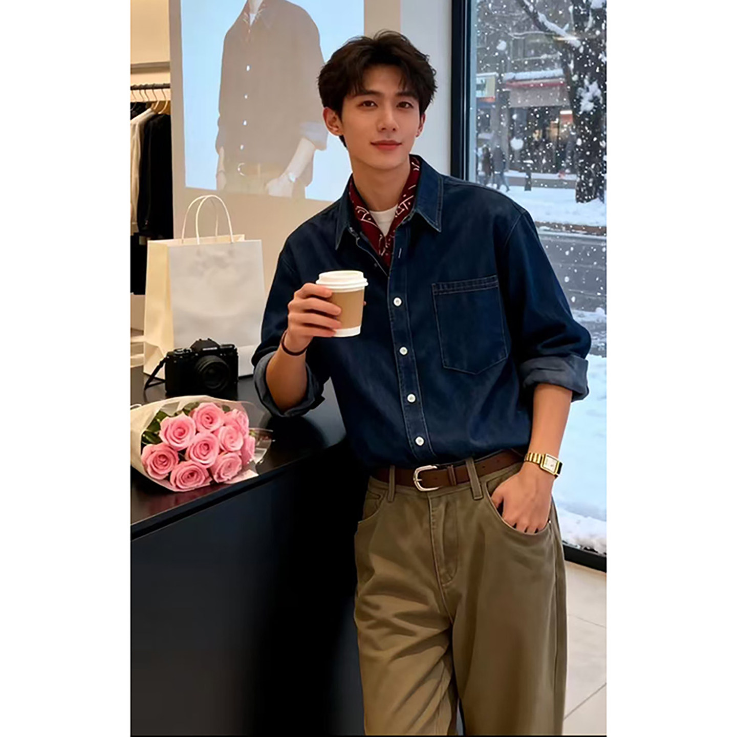 这款韩版英伦风男士牛仔衬衫,融合经典翻领设计与现代工装元素,呈现出高级感十足的痞帅气质。采用优质重磅水洗牛仔面料,质感挺括,耐穿不易变形。长袖版型适合春秋叠穿,无论是内搭纯色T恤、外披工装外套,还是单穿搭配休闲裤,都能轻松打造层次分明的都市型格。精致走线、复古金属纽扣与微落肩剪裁,细节中彰显品味。整体风格既保留英伦的优雅内敛,又融入韩式潮流的随性不羁,是追求个性与质感的现代男士衣橱必备单品,轻松驾驭日常通勤与休闲出街场景。