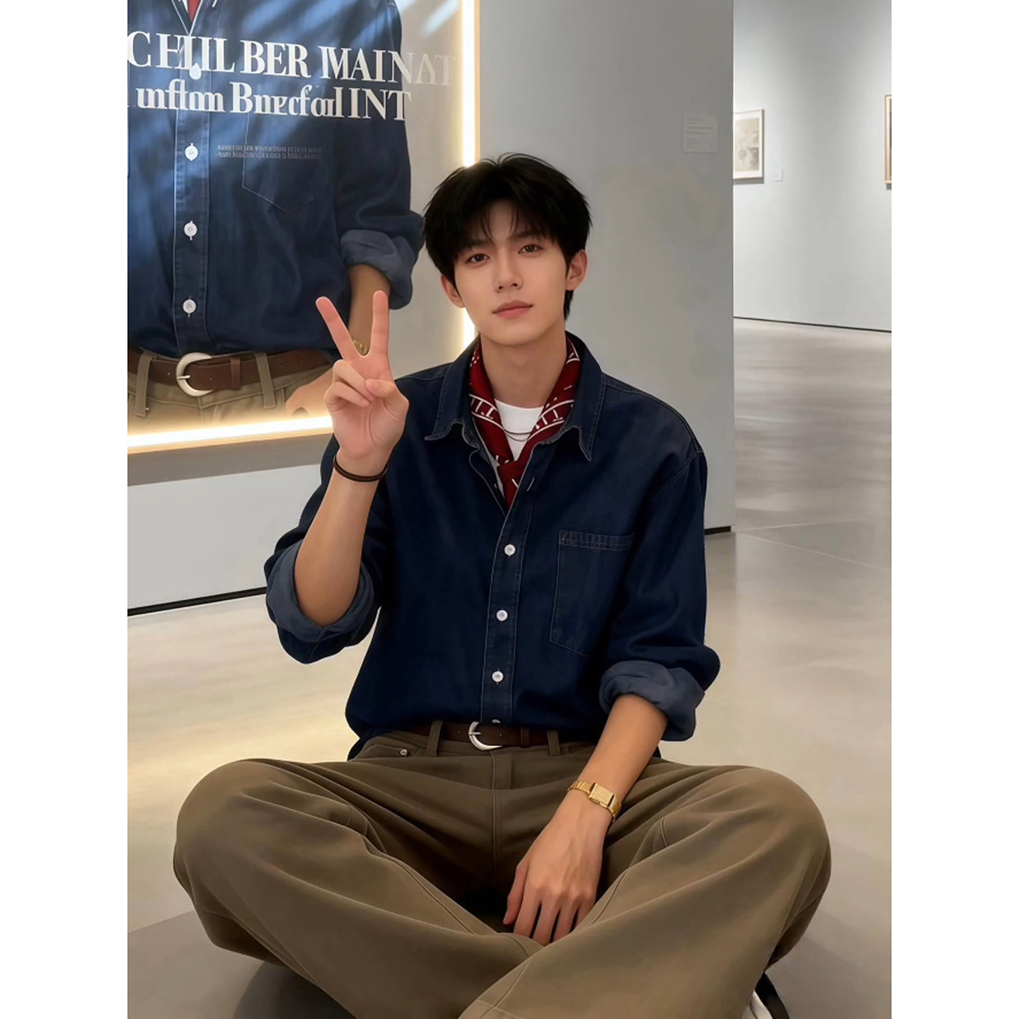 韩版英伦风牛仔衬衫男士高级感痞帅长袖衬衣内搭叠穿翻领工装外套