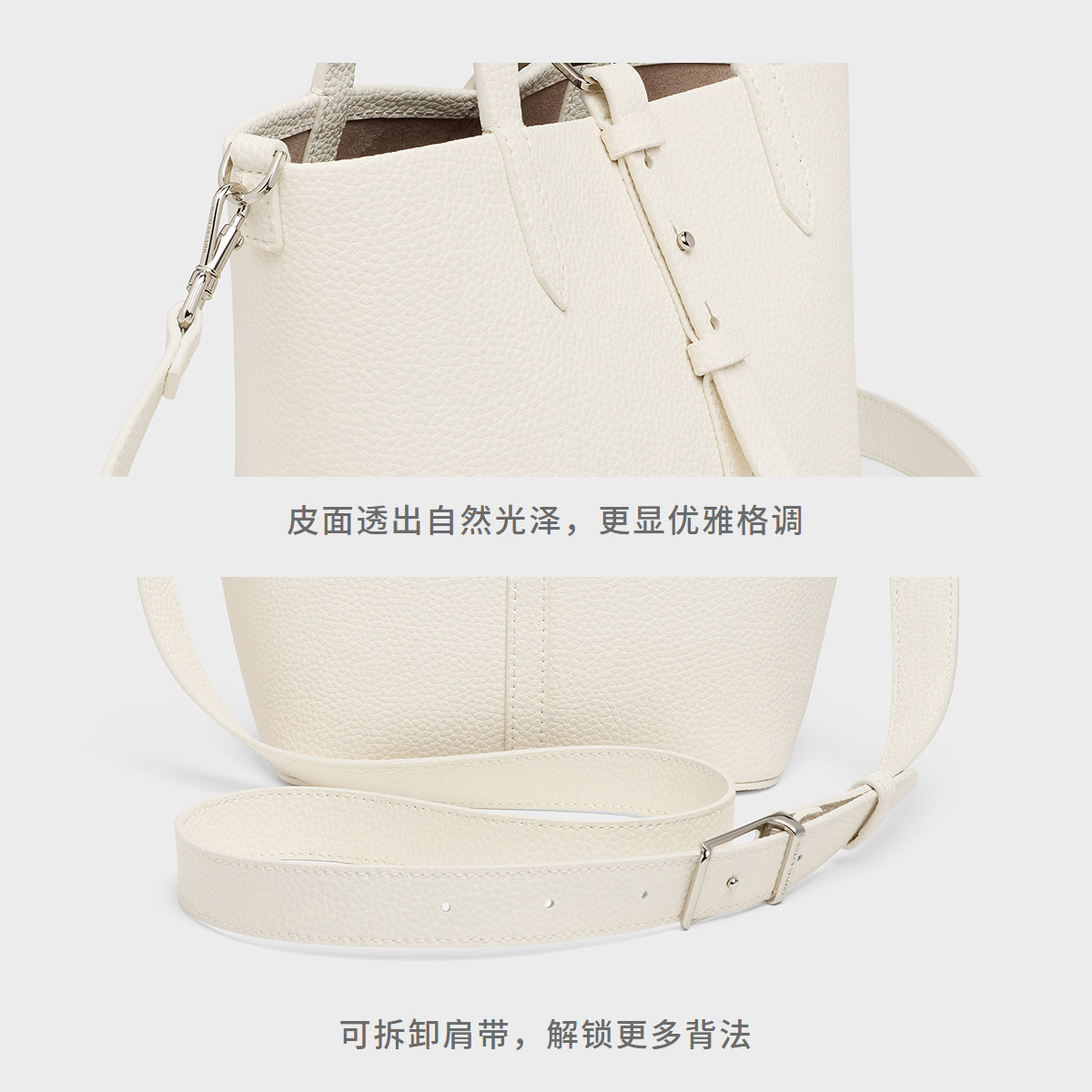 CHARLES&KEITH 2024春夏新款女包 CK2-10151518,以简约设计诠释都市通勤美学。这款手提水桶包融合菜篮子包的随性气质与通勤包的功能性,采用优质皮革材质,线条流畅,廓形挺括。包身容量适中,内设分层收纳,轻松容纳手机、钱包、化妆品等日常 essentials。搭配可调节肩带,可手提或斜挎,满足不同场合需求。经典纯色设计,百搭易衬,无论是职场穿搭还是休闲出行都能轻松驾驭。细节处彰显品牌精致工艺,兼具实用与时尚,是现代女性日常出行的理想伴侣。