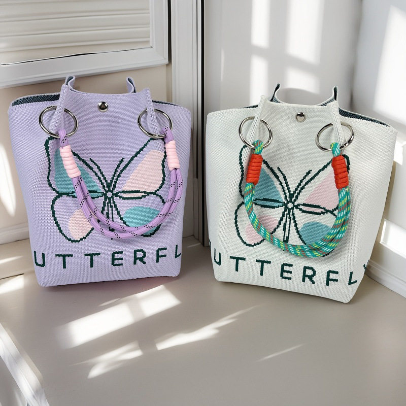 淘宝韩系ins风针织水桶包可爱蝴蝶爱心手提包女夏小众设计百搭感编织