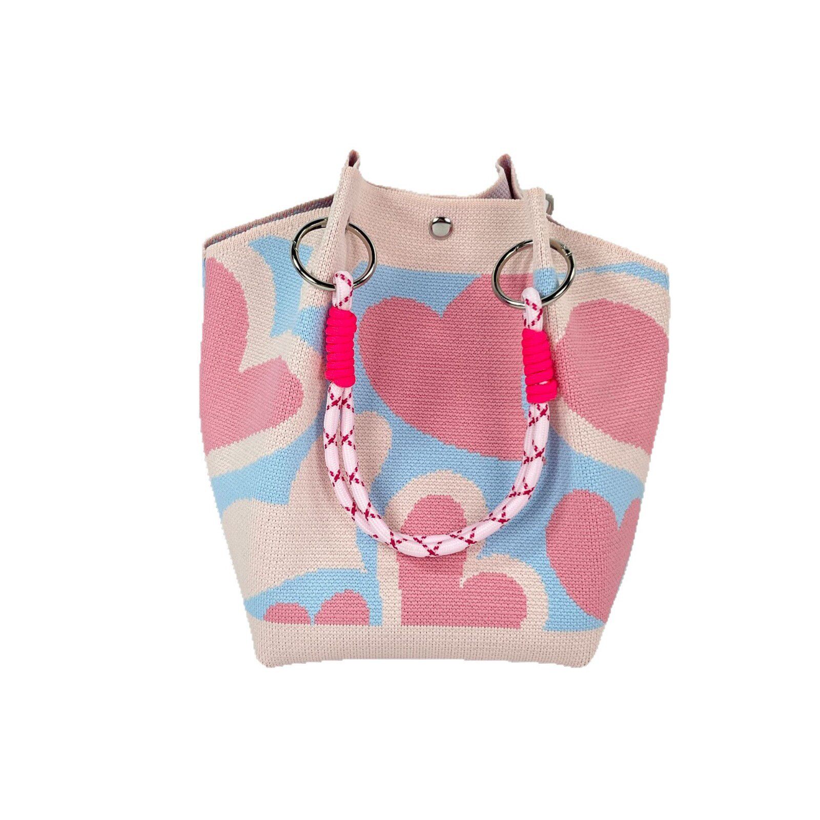 这款韩系ins风针织水桶包,以清新甜美的设计俘获少女心。采用柔软亲肤的编织工艺,搭配小巧可爱的蝴蝶结与立体爱心装饰,细节满分,尽显小众设计感。桶身轻盈挺括,容量适中,轻松容纳日常 essentials。无论是搭配连衣裙、T恤还是休闲装,都能 instantly 提升整体造型的百搭感与时尚度。夏日出行、约会或街拍,它都是吸睛又实用的点睛之笔。环保材质与精致做工兼顾,让这款手提包不仅颜值在线,更承载着温柔治愈的氛围感,是追求个性与舒适并存的现代女性理想之选。