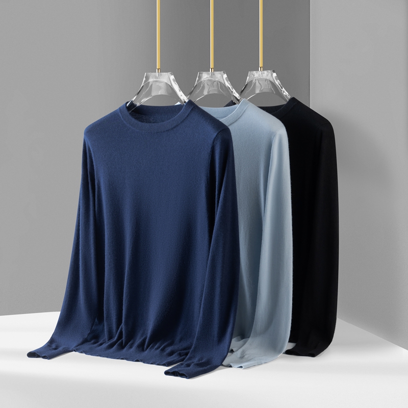 天上身果然很高档~男士山羊绒衫圆领纯羊绒毛衣针织打底衫秋冬宽松