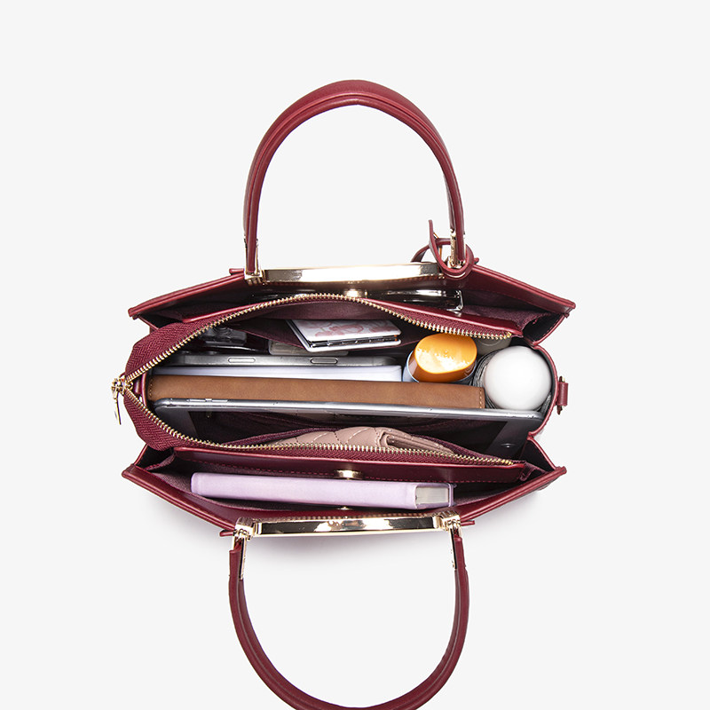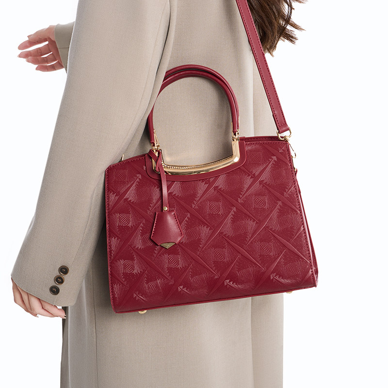 这款红色婚包专为大气优雅的中年妈妈设计,融合喜庆与实用,是婚礼、节庆及日常通勤的理想选择。采用优质面料,质感高级,经典正红色寓意吉祥幸福,彰显婆婆的尊贵气质。大容量托特包设计,轻松容纳手机、钱包、化妆品等随身物品,内部分层合理,收纳井然有序。可手提可斜挎,多种背法随心切换,舒适便捷。简约大方的外观搭配精致五金配件,既显品味又不失稳重,无论是出席婚礼、家庭聚会还是日常出行,都能展现成熟女性的魅力与从容,是送给妈妈或婆婆的贴心好礼。