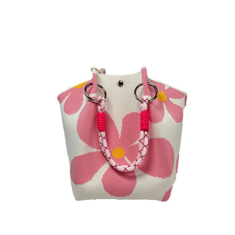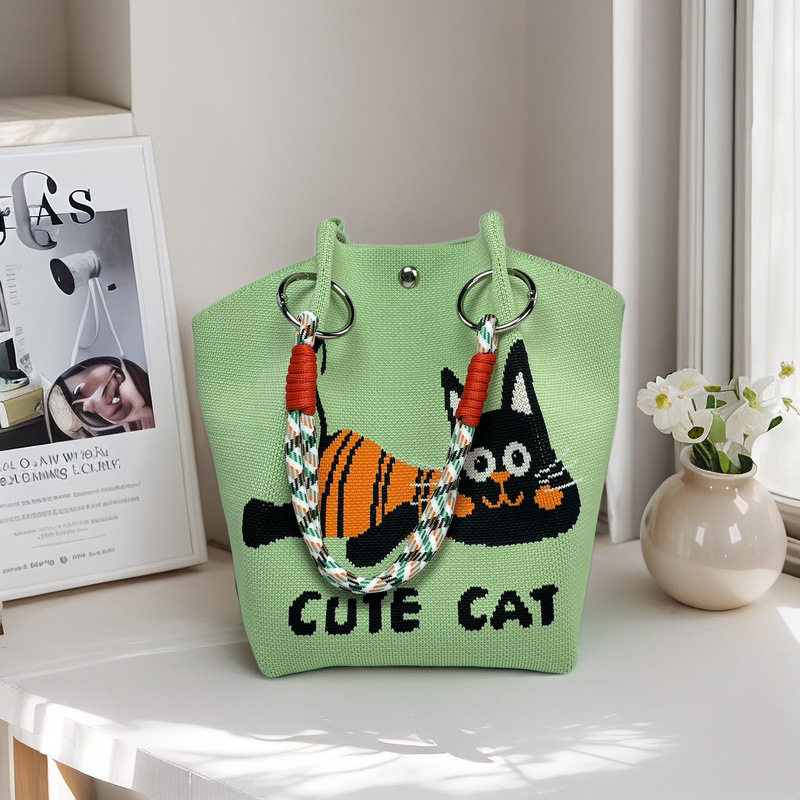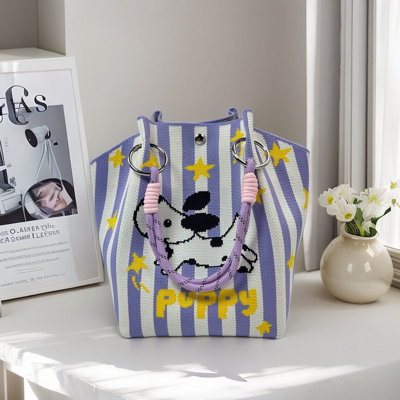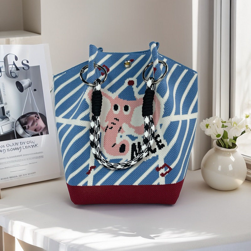 淘宝日系卡通条纹水桶包女可爱动物针织立体磁扣手提包百搭容量托特包