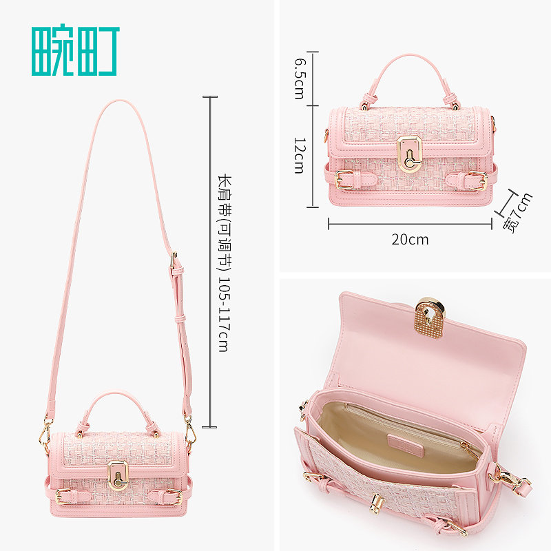 畹町小香风珠片斜挎女包,以经典“月光宝盒”为设计灵感,融合优雅与实用。包身采用精致珠片装饰,在光线下闪耀迷人光泽,尽显轻奢格调。翻盖设计搭配金属链条肩带,可斜挎、手提或单肩背,轻松切换通勤、约会或日常出行场景。小巧方盒造型简约百搭,既能装下手机、口红等随身物品,又不显累赘。无论是搭配裙装还是裤装,都能为整体造型增添一抹时尚亮点。优质皮质与细腻做工,确保耐用性与质感并存,是都市女性不可或缺的时尚单品。