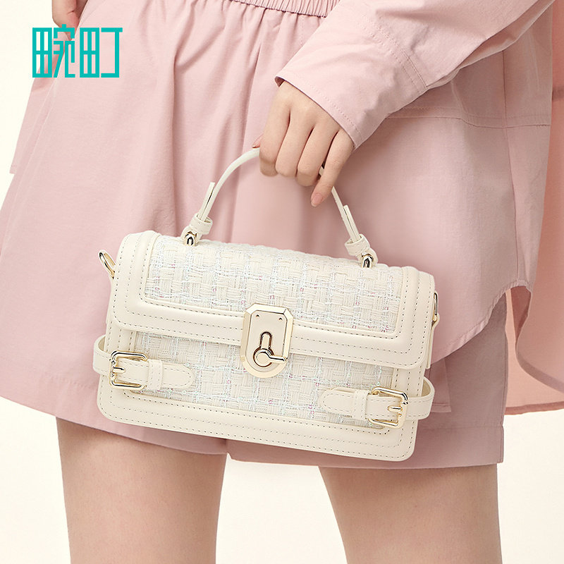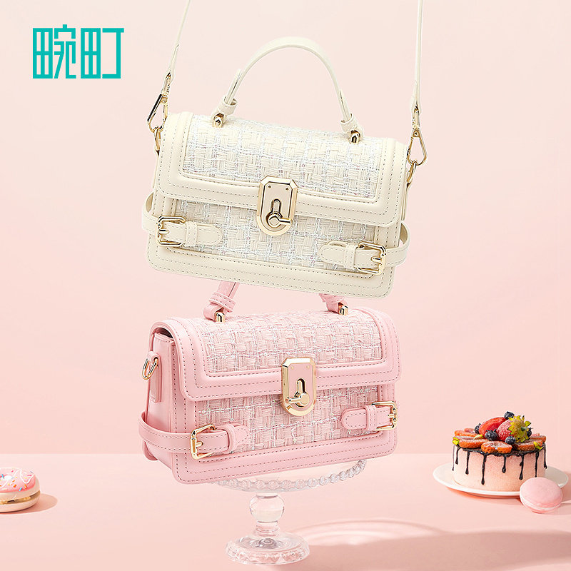 天猫畹町小香风珠片斜挎女包月光宝盒包包时尚百搭通勤手提翻盖小方包