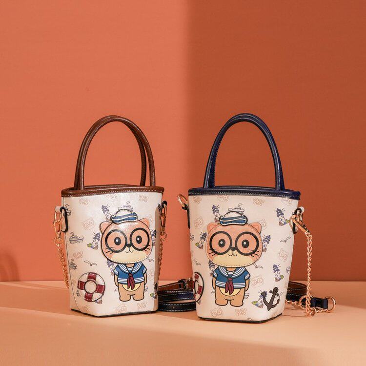 淘宝北包包正品新款时尚可爱海军猫手机包卡通百搭单肩斜挎包手提水包