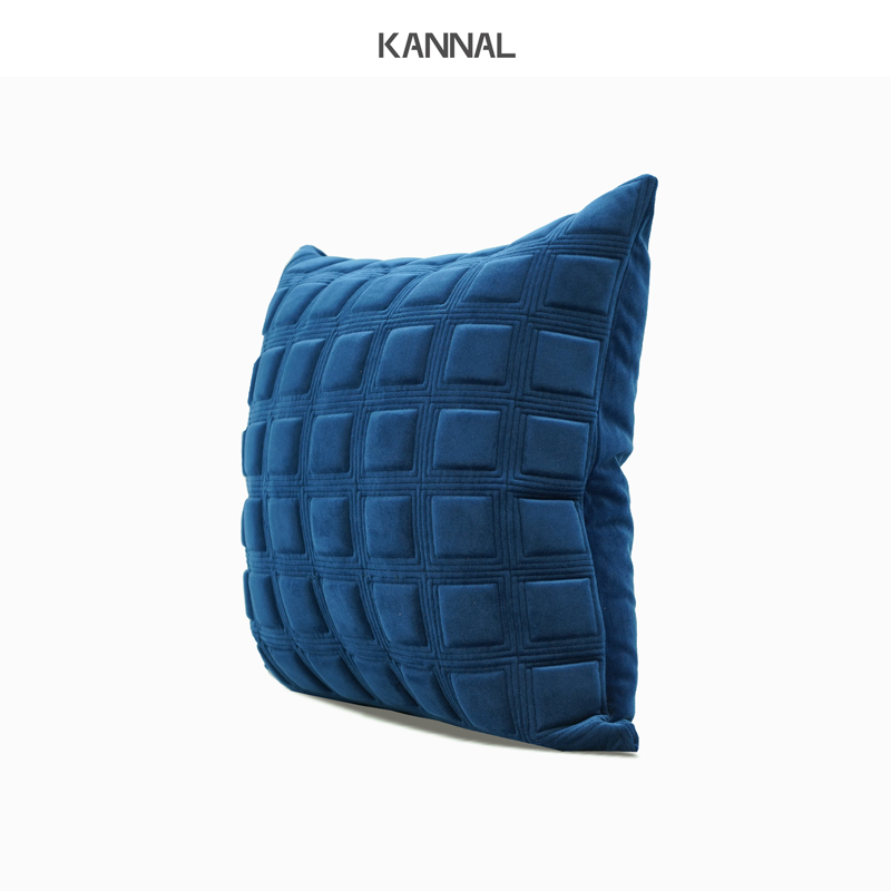 淘宝『MYSTER』轻奢蓝色方块立体绗缝北欧抱枕现代样板间别墅方枕
