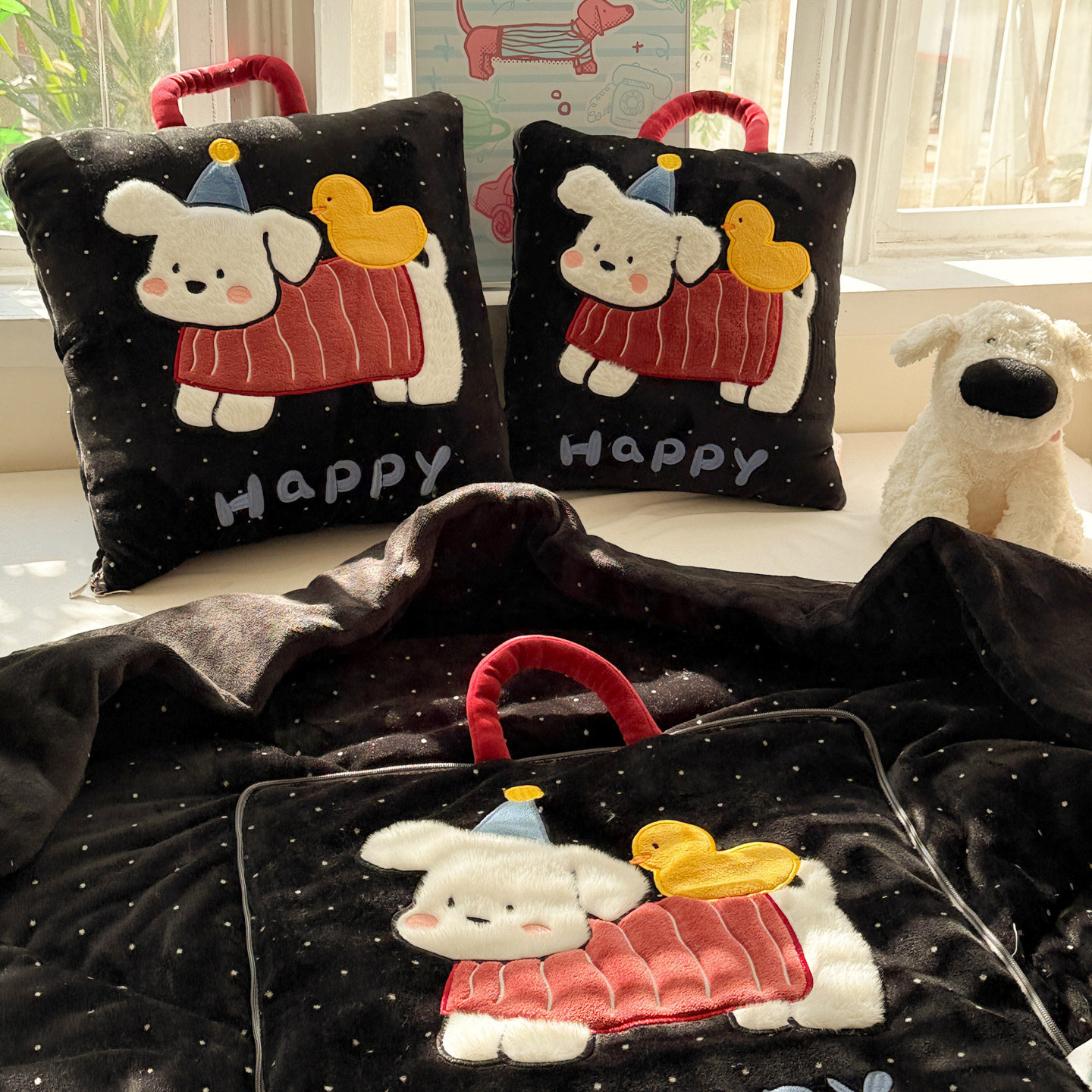 淘多巴胺猫咪抱枕被子两用办公室午睡靠枕垫空调毯子二合一车载枕头
