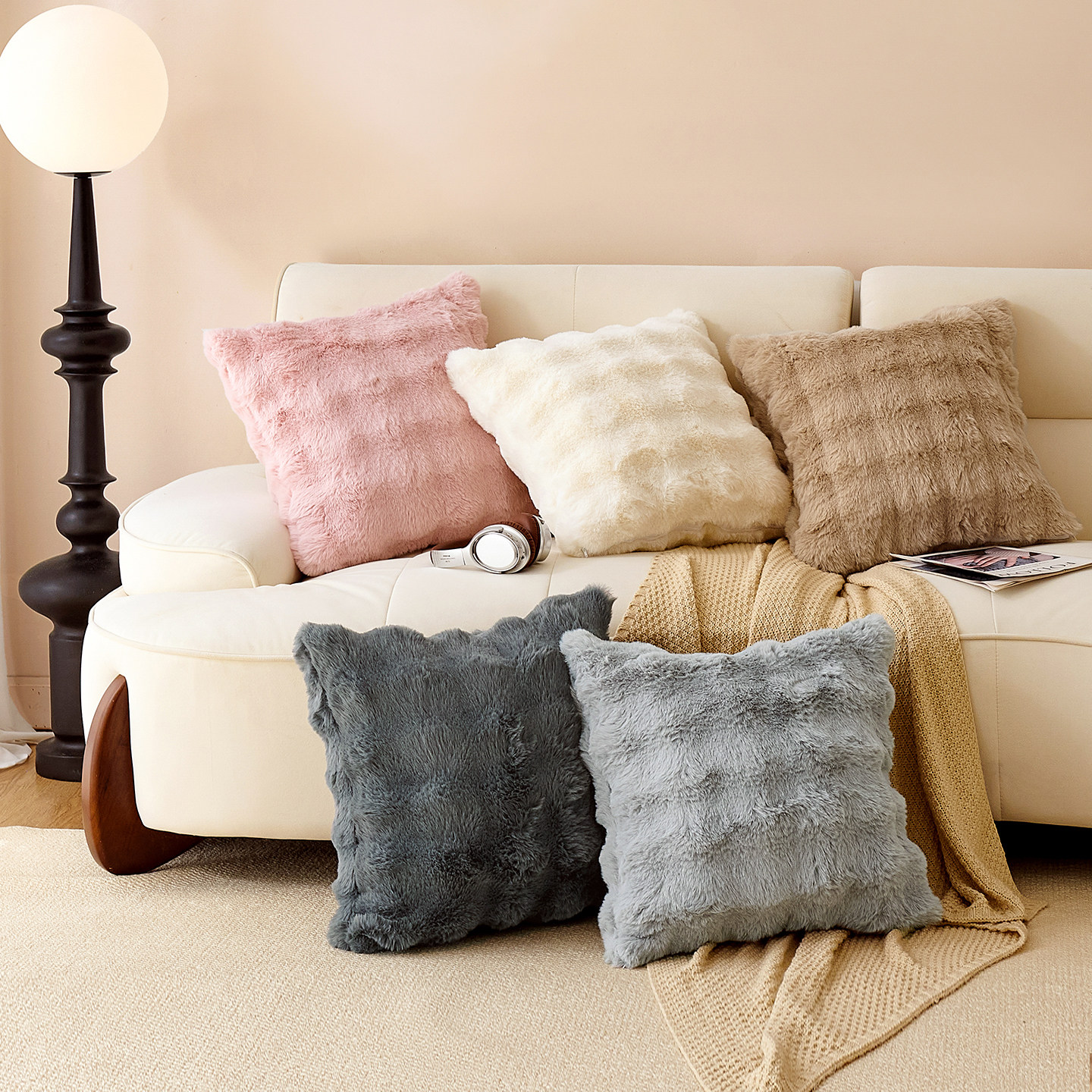 天猫奶油风轻奢双面兔毛抱枕沙发客厅靠枕办公室靠背冬季床靠垫不含芯