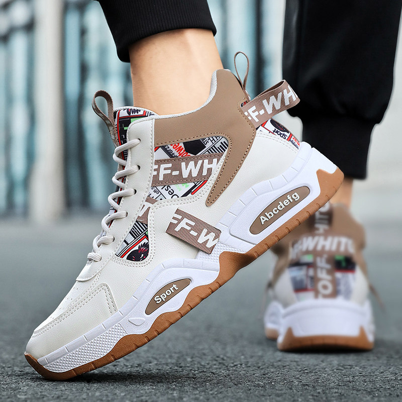 高帮男鞋2025新款夏季厚底休闲板鞋潮流百搭防滑男士篮球运动潮鞋