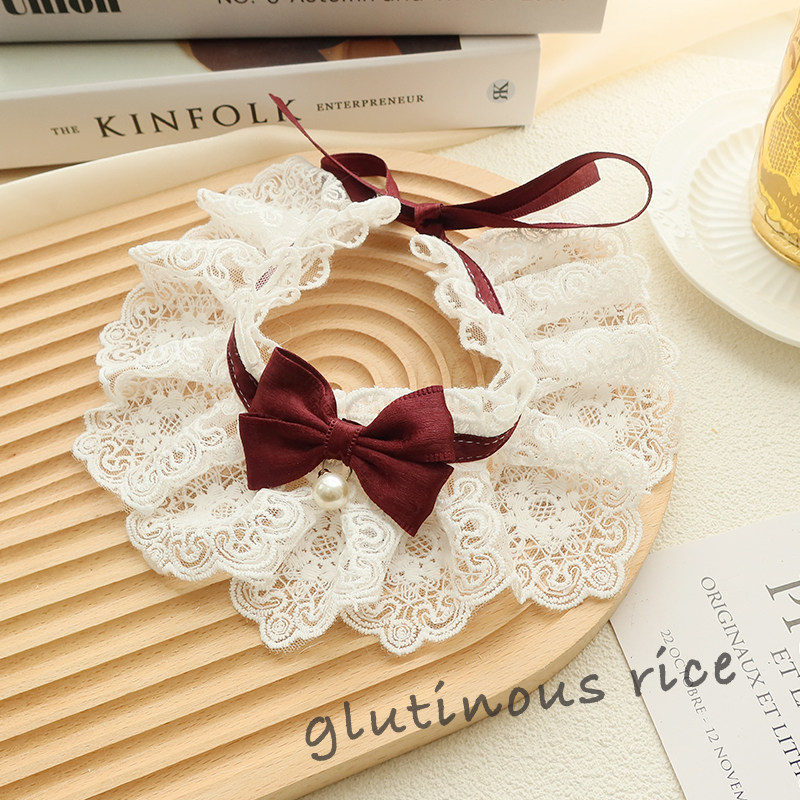 淘猫咪狗可爱围兜宠物蕾丝布艺口水巾手工编织拍照饰品围脖装饰项圈