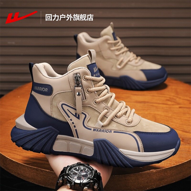 天高帮男鞋冬季2026新款国潮中学生休闲运动篮球厚底老爹鞋加绒棉鞋