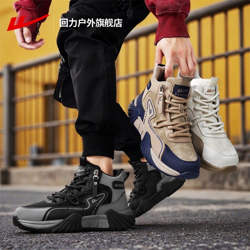 回力男鞋冬季青少年运动休闲篮球跑步防滑减震厚底增高小白老爹鞋