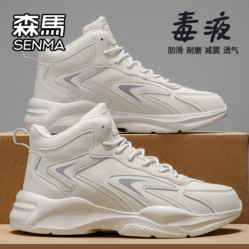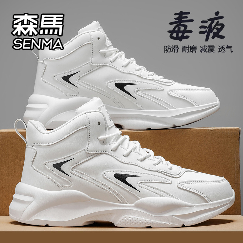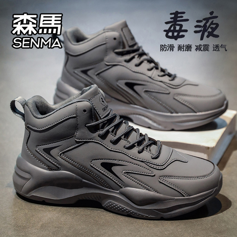 天猫森马高帮男鞋冬季爆款百搭运动休闲皮面跑步篮球厚底增高老爹潮鞋