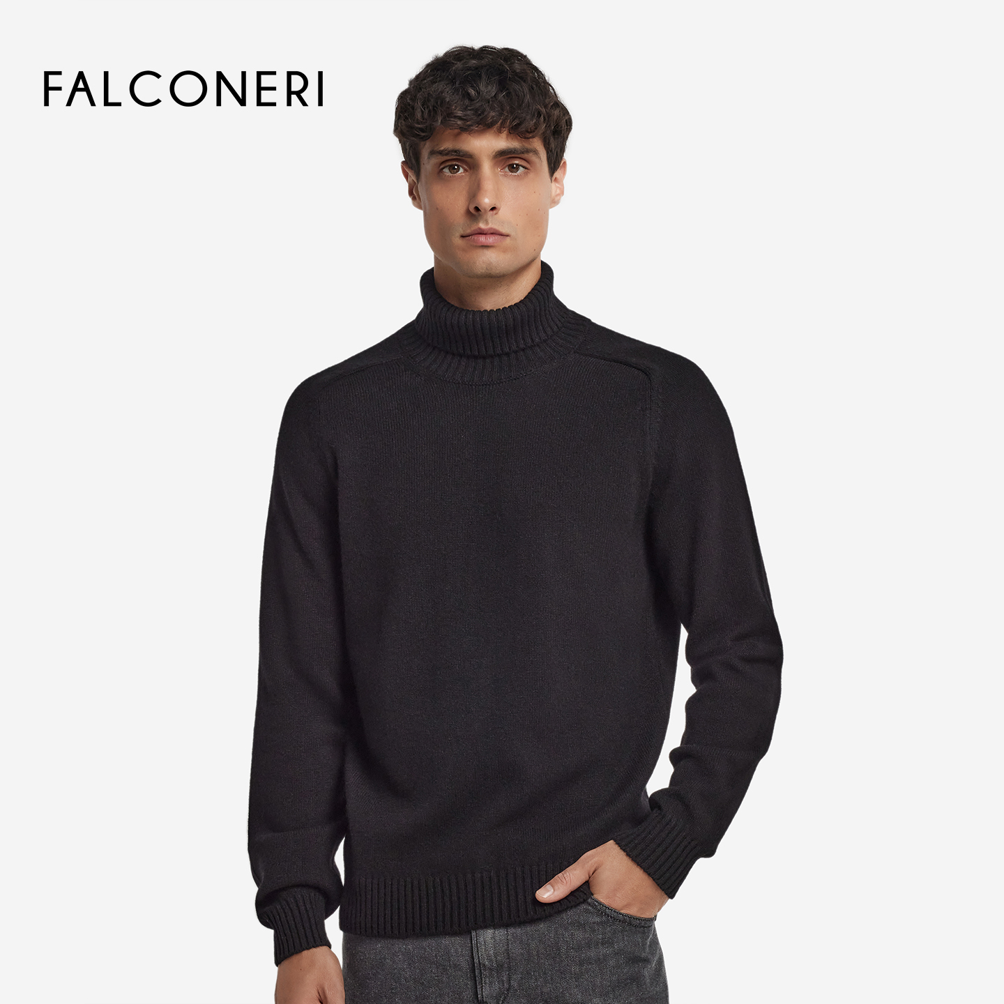天猫FALCONERI男士经典休闲长袖毛衣原色山羊绒运动高领衫毛衣UML428B