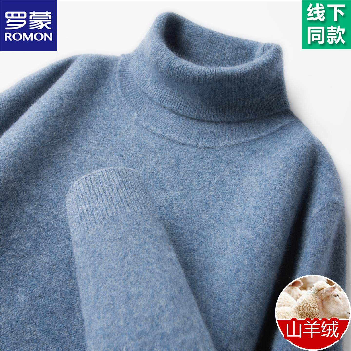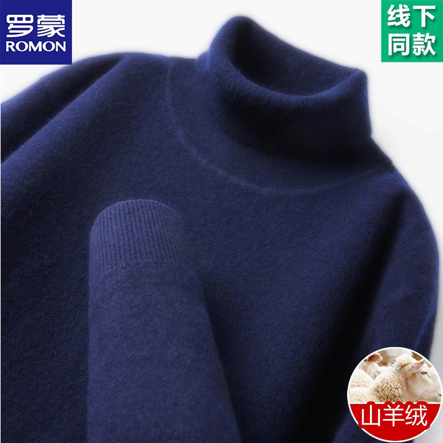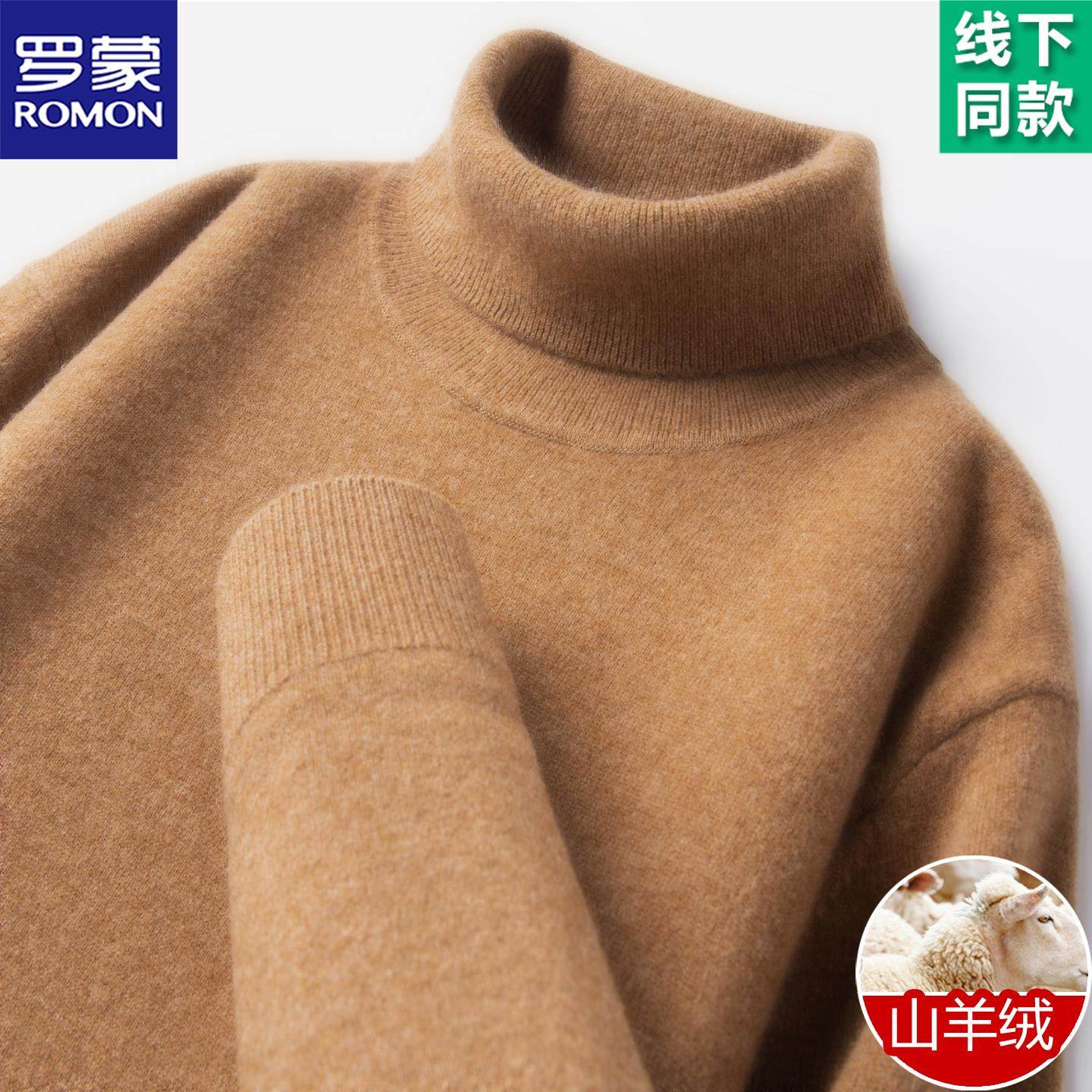 淘宝罗蒙高端两翻领山羊绒衫男高领加厚保暖针织毛衣轻奢极简风羊毛衫