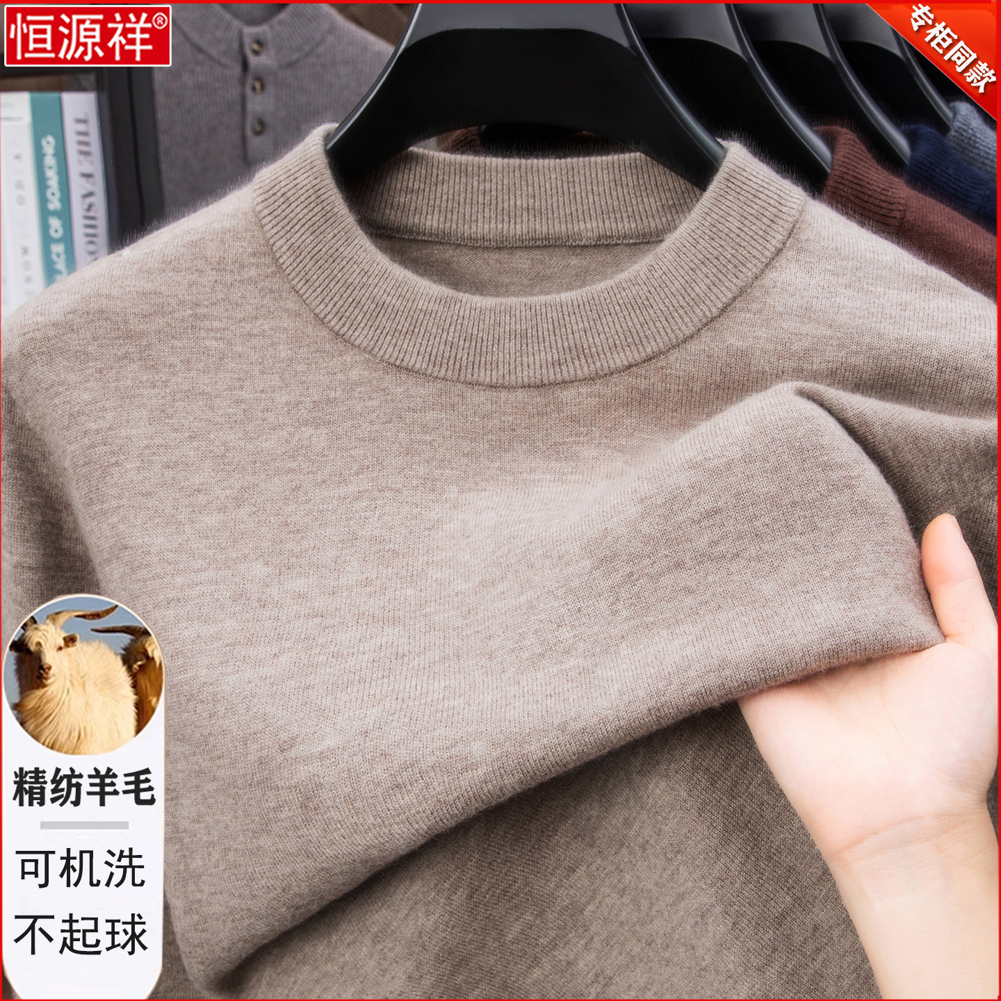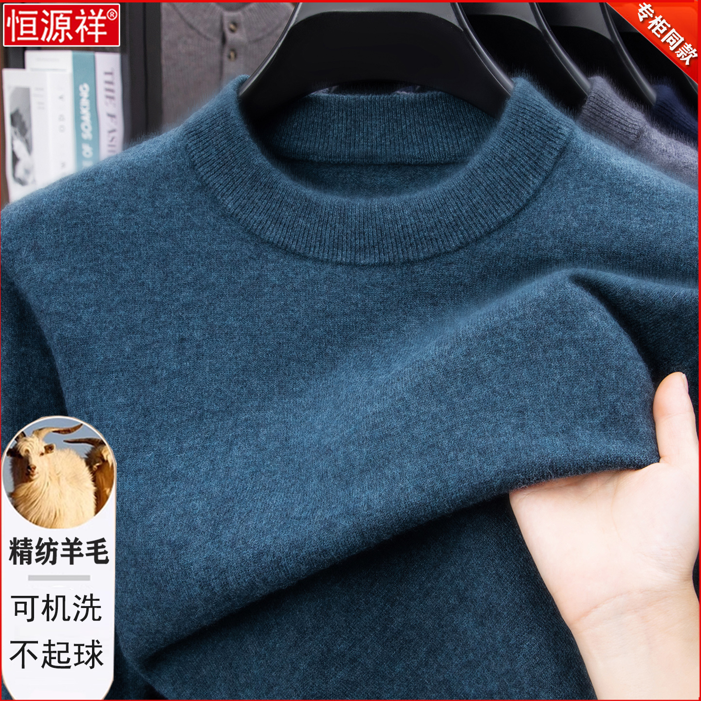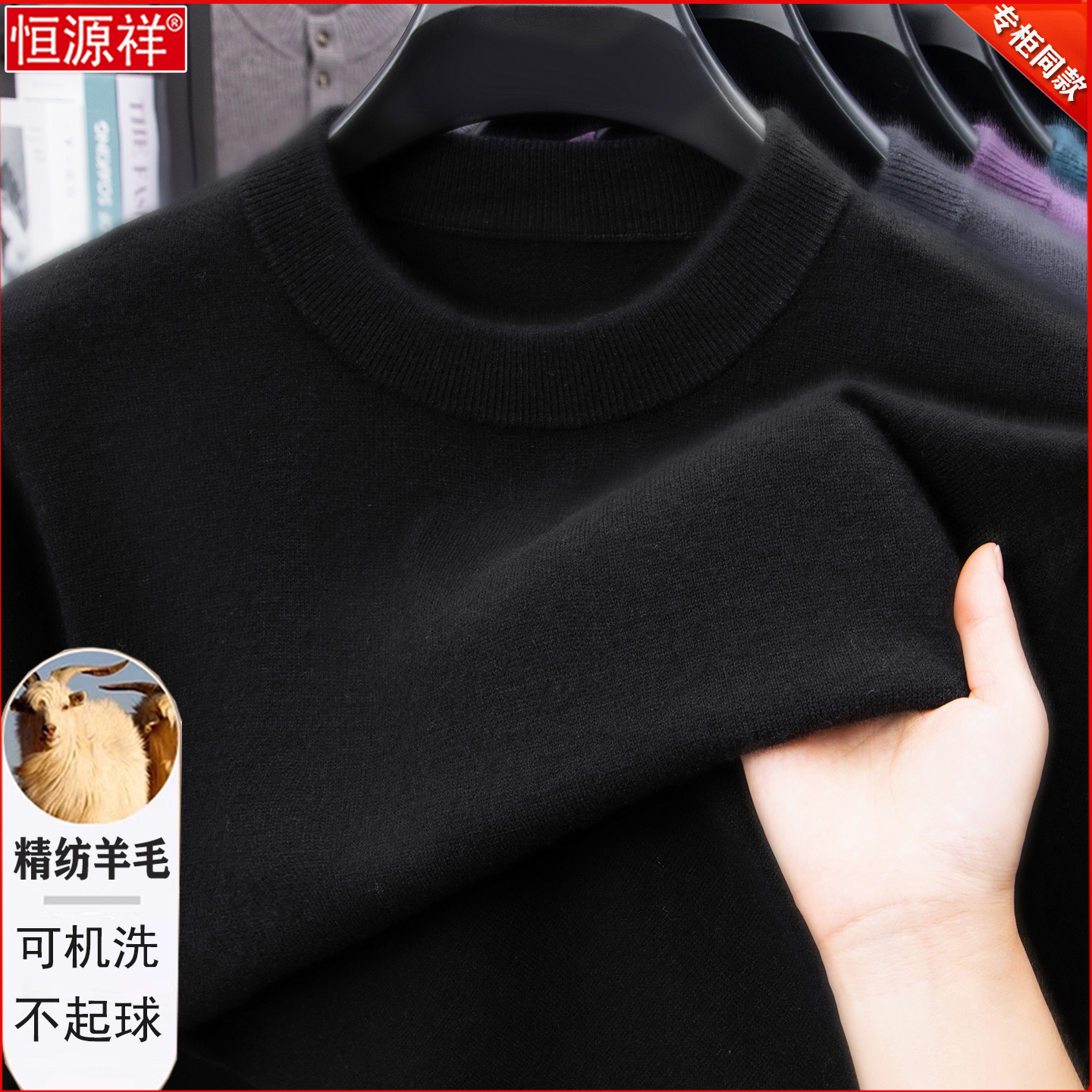 淘恒源祥加绒加厚100纯羊绒衫男圆领冬季毛衣男士一体绒打底羊毛衫